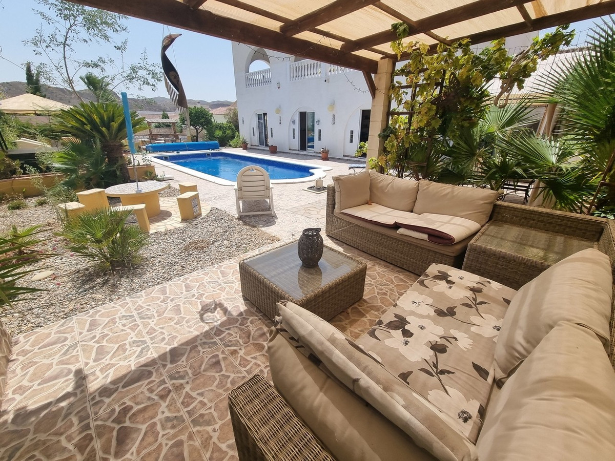 Set in the peaceful hamlet of La Perla, Arboleas, this impressive two-story villa offers a perfect blend of grandeur, comfort, and versatility. With a total constructed area of 425 sqm—including expansive wrap-around terraces—this home is ideal for those seeking spacious living in a tranquil yet convenient location.