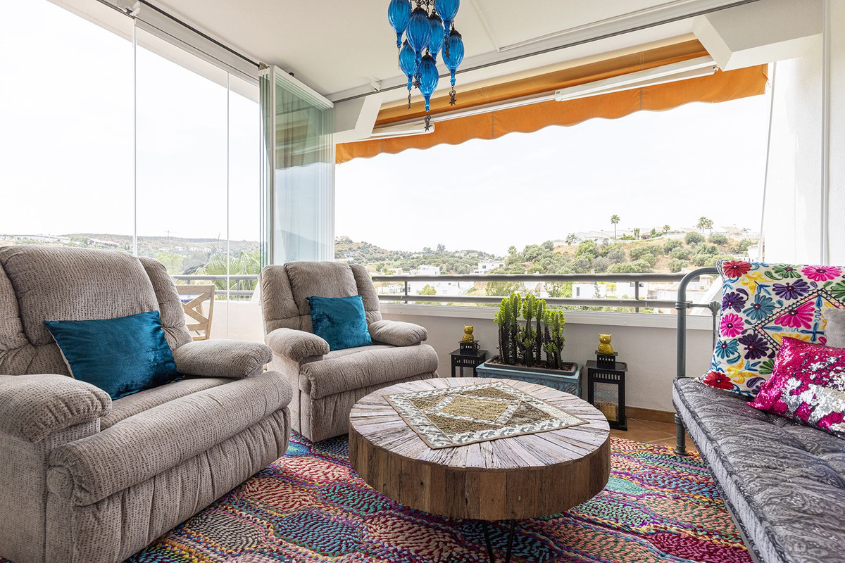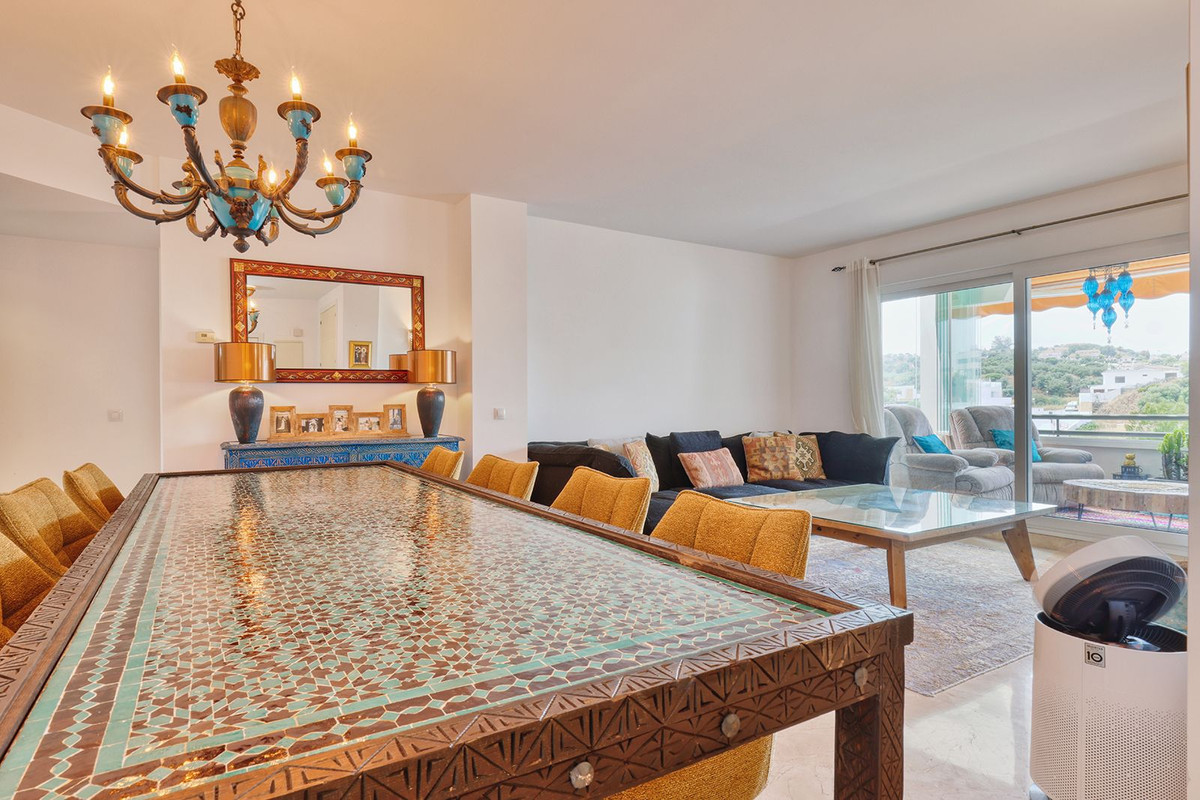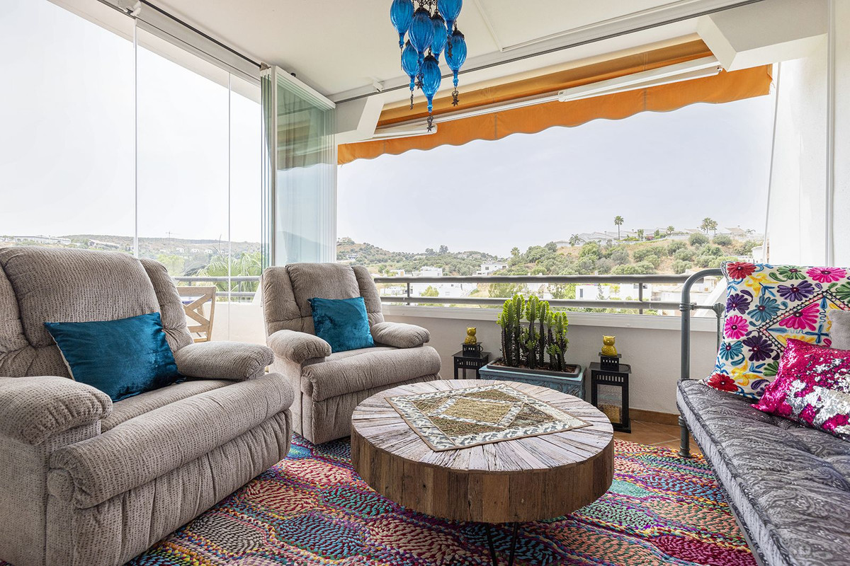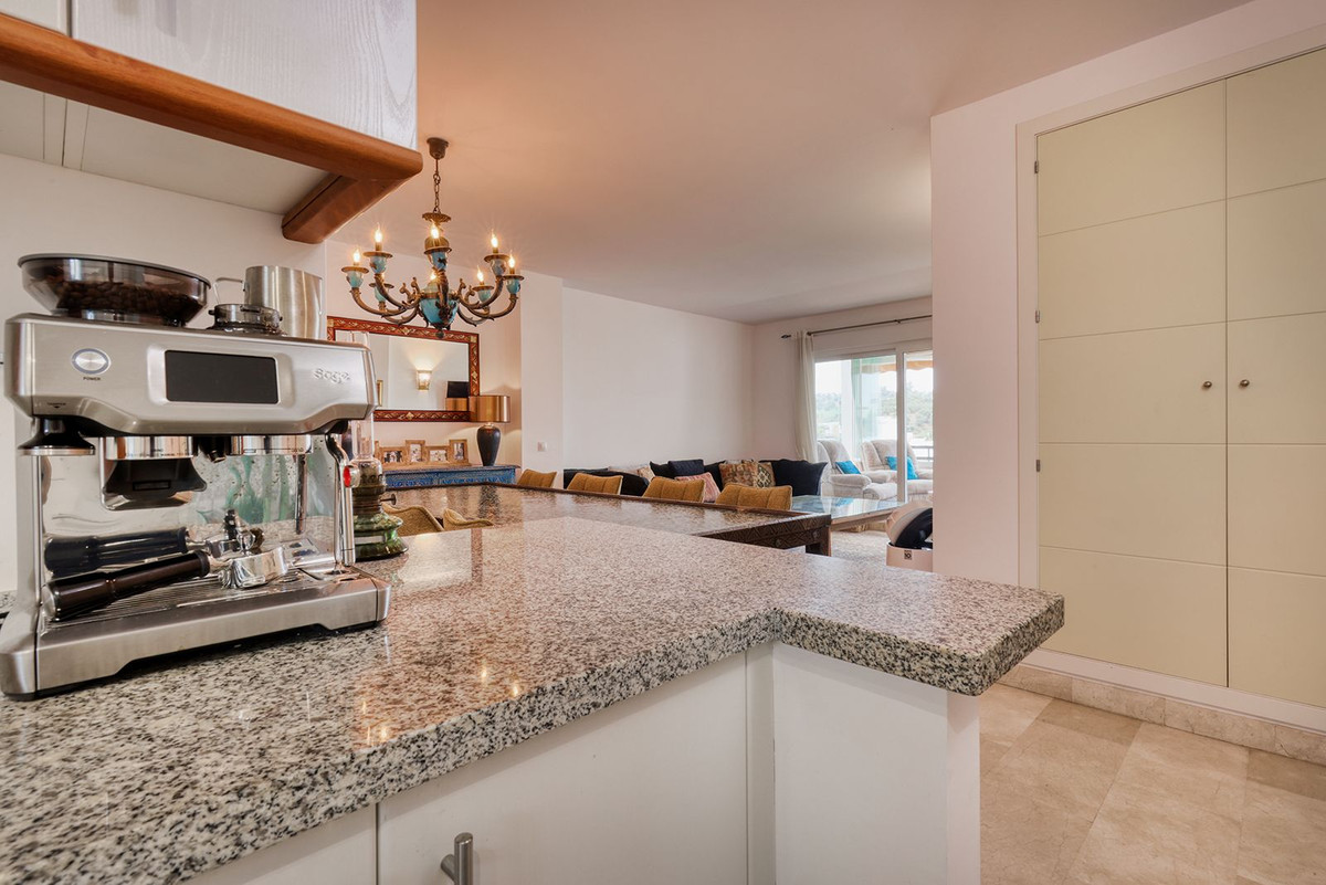 Discover this spectacular three-bedroom penthouse with a private solarium-style terrace in the exclusive Cerrado del Águila Golf development, where tranquility and privacy are part of your daily life. With 125 m² of built area, this space stands out for its spaciousness and light, thanks to its marble floors and large windows offering stunning views of the golf course and the Mijas Mountains. The kitchen, equipped with a separate laundry room, is perfect for food lovers.