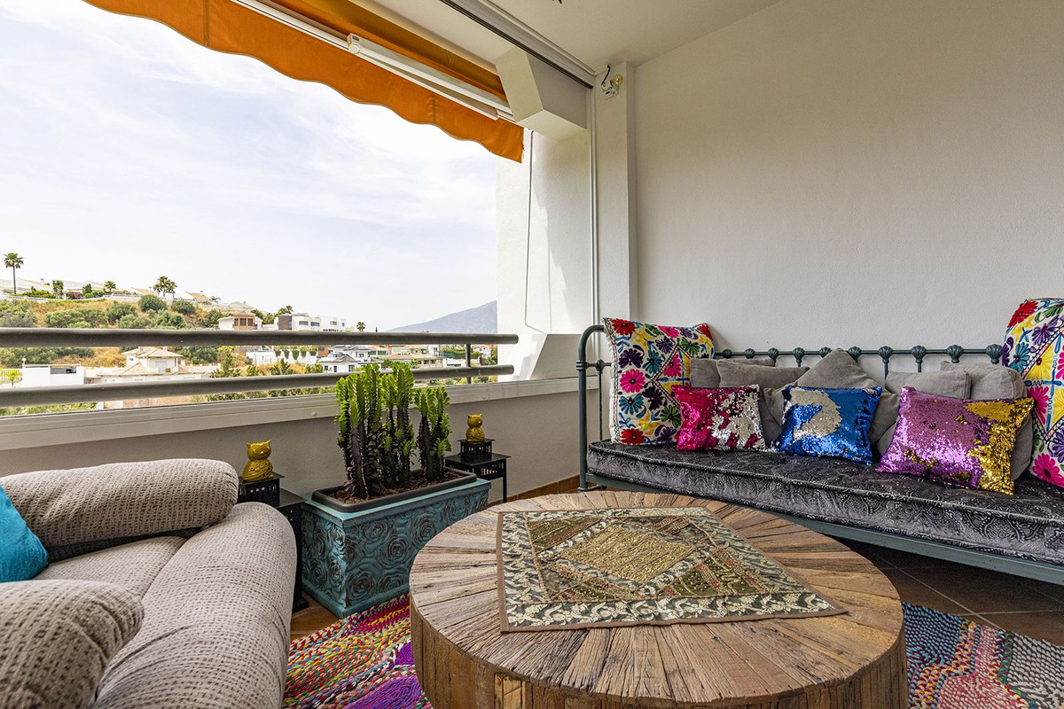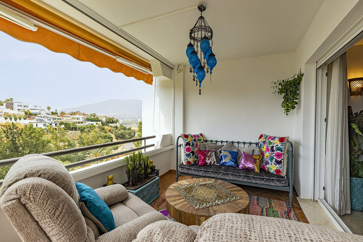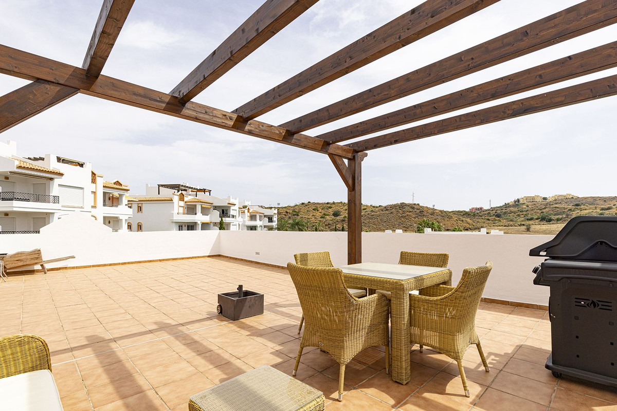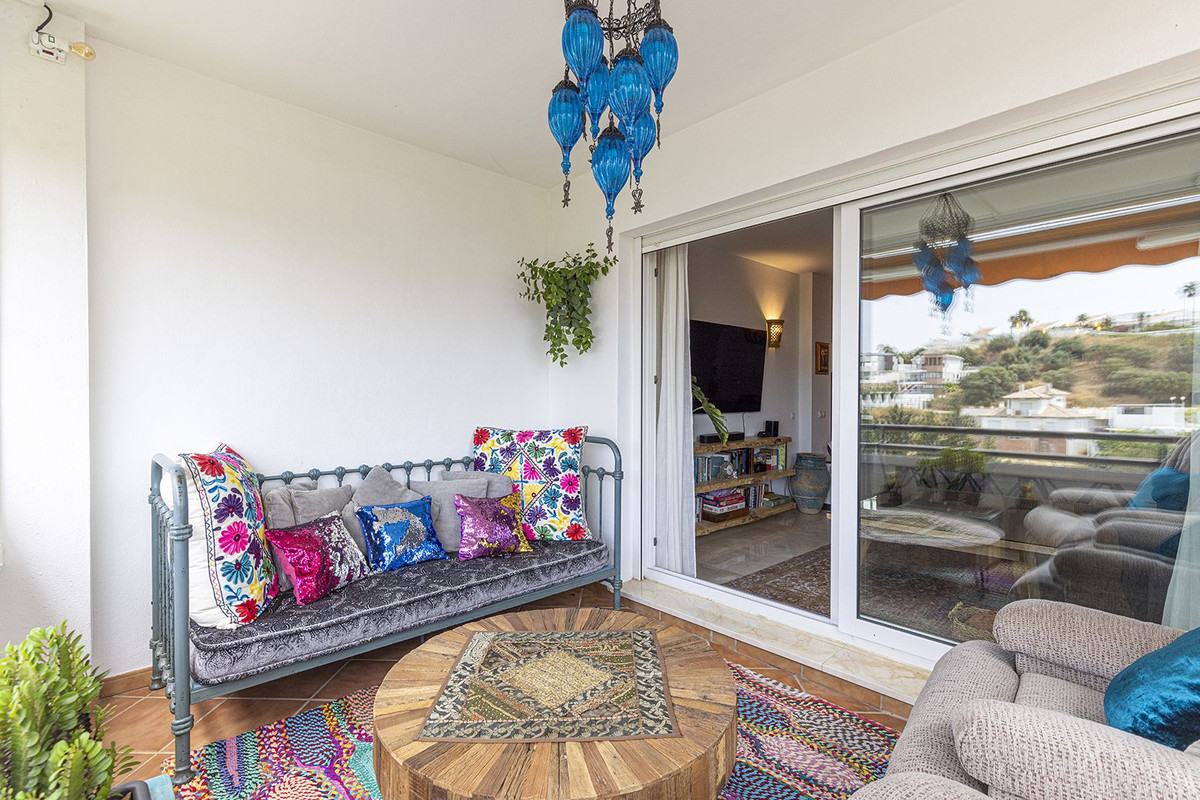 Discover this spectacular three-bedroom penthouse with a private solarium-style terrace in the exclusive Cerrado del Águila Golf development, where tranquility and privacy are part of your daily life. With 125 m² of built area, this space stands out for its spaciousness and light, thanks to its marble floors and large windows offering stunning views of the golf course and the Mijas Mountains. The kitchen, equipped with a separate laundry room, is perfect for food lovers.
