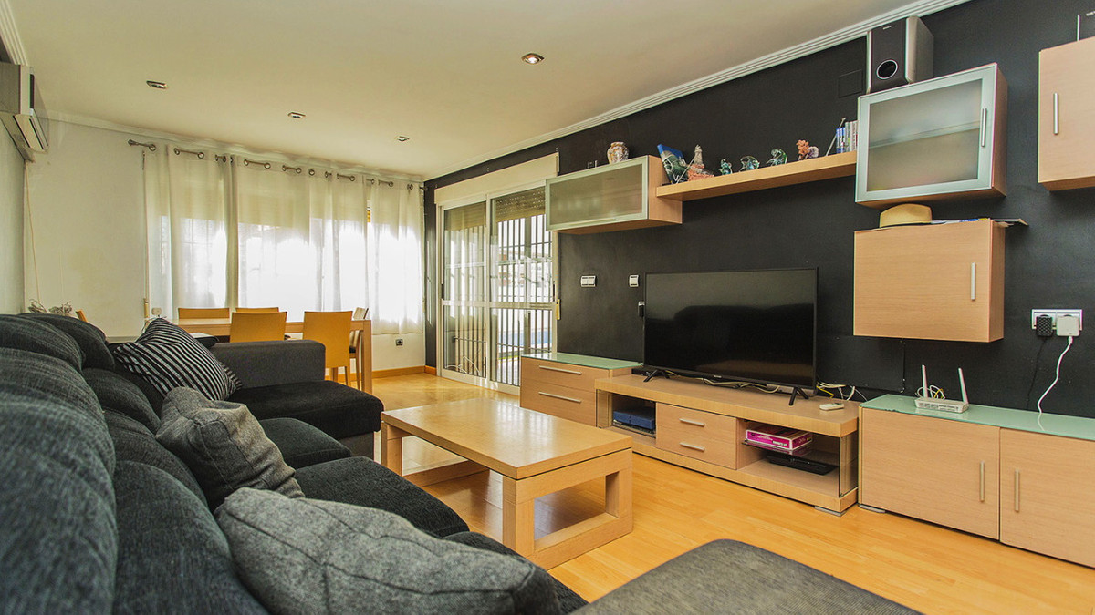 Semi-detached house with pool and private garage for sale in Los Balcones, Torrevieja. The plot has 500 m2 with a private pool. The house is only on one floor and is located on the corner. It is distributed as follows: it has 115 m2. From the entrance we find an open porch, living-dining room with fireplace, independent kitchen complete with all appliances and with an exit to the terrace on the other side of the house, a storage room, a laundry room, three bedrooms with built-in wardrobes, a dressing room. , two full bathrooms. The house is completely renovated and is sold furnished. In the semi-basement part there is another apartment with its completely independent entrance, where you can make an apartment for guests. There is also a garage. The house has an excellent location with all services nearby, such as. Just 5 m from the Torrevieja Hospital, bus stop, pharmacy and supermarket.