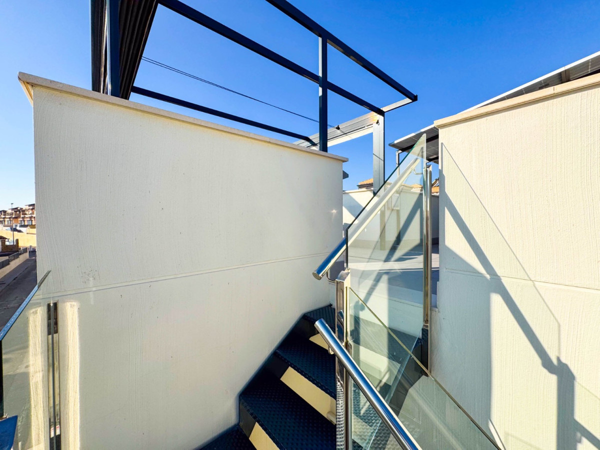 We present this spectacular 2-storey independent house with a private solarium, located in the exclusive and quiet PAU 26 area of Orihuela Costa, in the Residencial Entregolf urbanization. A modern and recently built home (2020), ideal for those seeking comfort, quality and proximity to all services. With 103 m² built on a 142 m² plot, this property stands out for its top quality finishes and its spacious spaces, designed for your comfort.