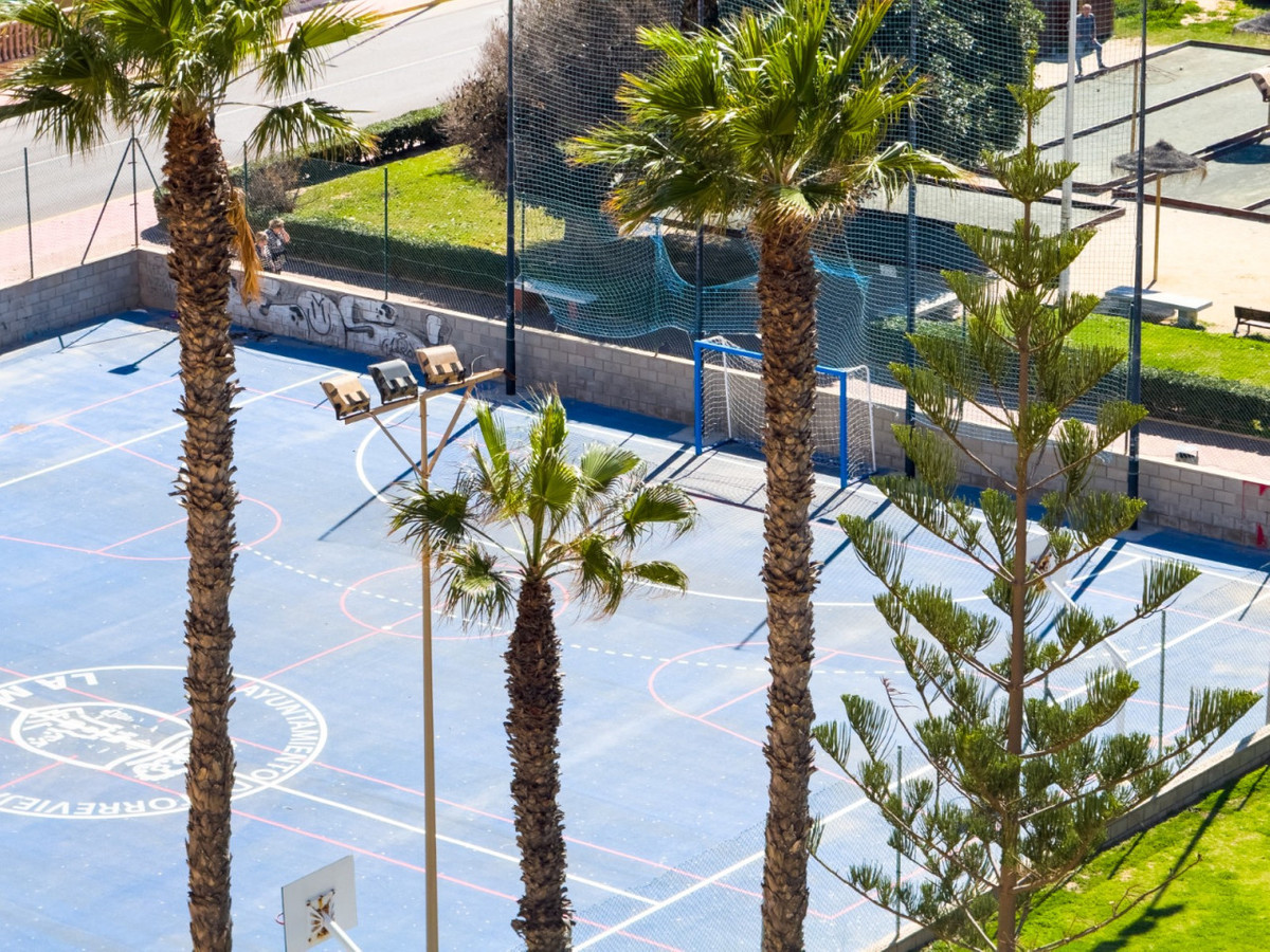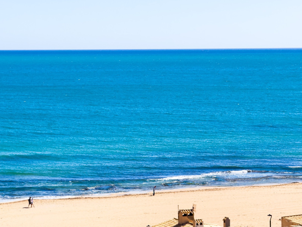 A very spacious beachfront apartment is for sale in the center of La Mata, Torrevieja. The apartment is located in the heart of the town and boasts beautiful lateral sea views from the exterior. It is located on the seventh floor of a building with two elevators and a ramp for people with reduced mobility. The apartment is distributed as follows: a spacious living-dining room with access to the terrace, which is approximately 23 m2 southeast-facing and offers beautiful sea views, three bedrooms with all exterior windows and built-in wardrobes, a separate kitchen with all appliances and access to the utility room, and two full bathrooms with showers. In the basement of the same building, there is a parking space, which is included in the price. The property has an excellent location, a stone's throw from the beach and just 2 minutes from the center of La Mata, with all amenities nearby, such as supermarkets, local shops (food and other services), and restaurants.