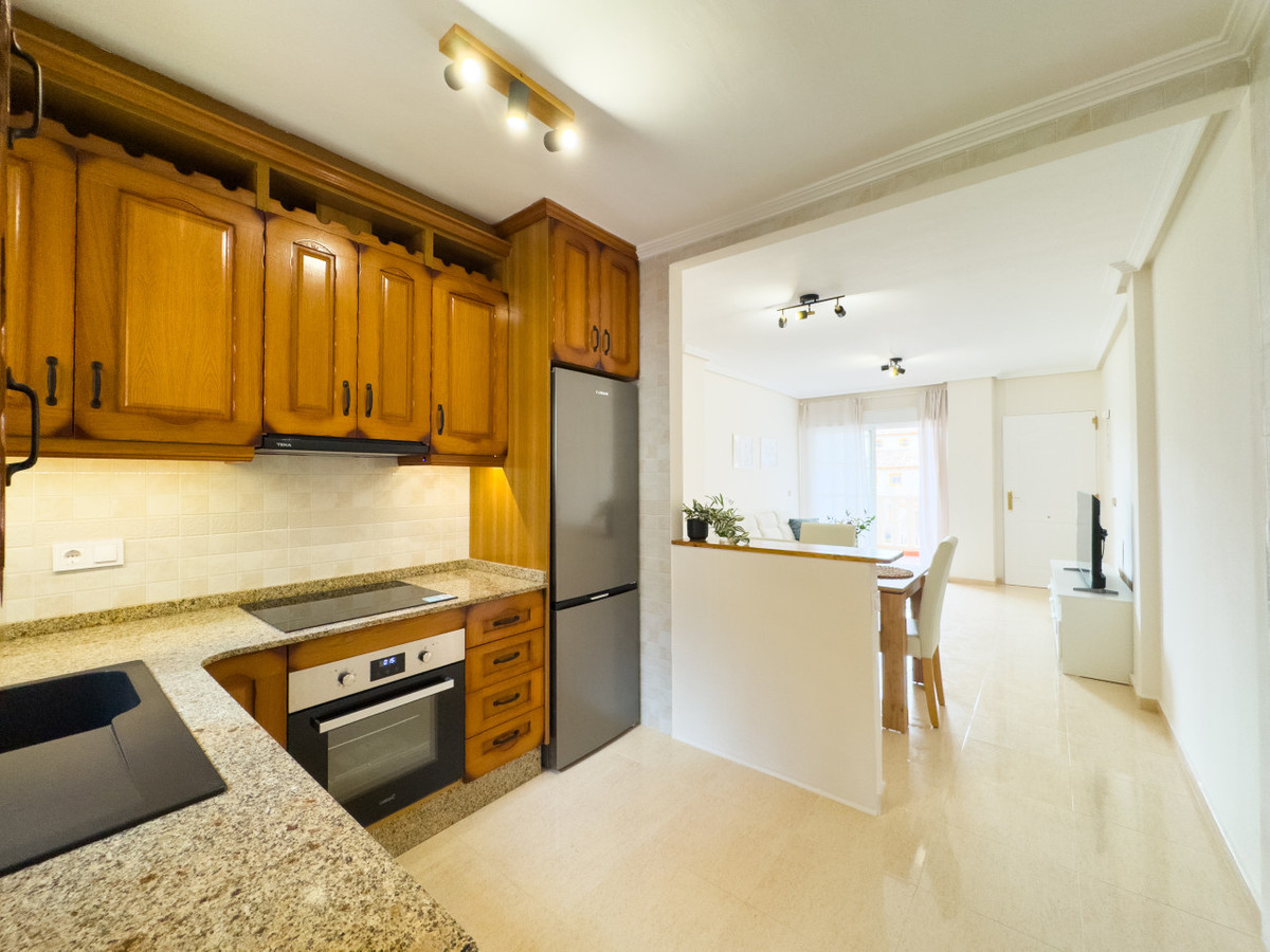 We present a bright and spacious apartment in a quiet, green area of Cabo Roig. Fully renovated in Scandinavian style, it comes fully furnished and ready to move in. The large sunny terrace offers relaxing views of the park, creating a sense of privacy and calm. Air conditioning ensures comfort all year round.The residential complex features a large swimming pool with relaxation areas for residents. Shops, cafés and restaurants are within walking distance, making everyday life convenient and easy. The sandy beaches are only 4 km away — ideal for those who appreciate peace but want to stay close to the sea.This apartment is perfect for permanent living, holidays or rental investment. Cabo Roig is known for its nature, developed infrastructure and safe, family-friendly environment. An excellent investment for a comfortable life in Spain.