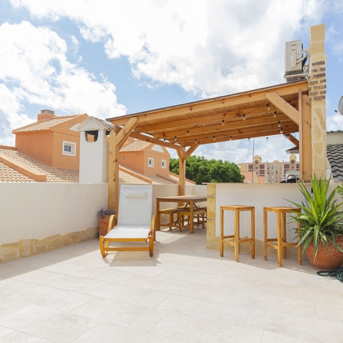 Spacious bungalow in Torrelamata Torrevieja near La Mata BeachThis spacious bungalow is located in the sought-after Torrelamata area of Torrevieja, just 350 meters from the well-known La Mata Beach, one of the most popular stretches of sand on the Costa Blanca. Its location is perfect for enjoying the sea while having all services close at hand: supermarkets, restaurants, pharmacies, and leisure options are all within 100 meters.The property features a private 29 m² terrace, ideal for sunbathing, outdoor dining, or relaxing in a quiet atmosphere. Inside, the large living and dining room provides a bright and welcoming space for family gatherings or entertaining friends. On the main floor, there are three bedrooms with built-in wardrobes and a fully equipped bathroom in excellent condition.An additional advantage is the basement, accessible by an internal staircase, which includes two spacious bedrooms. This versatile area can be adapted into more bedrooms, a gym, a playroom, or a home office depending on your needs.The residential complex also offers outdoor communal parking. With its prime location, generous living areas, and versatile use of space, this bungalow in Torrevieja is an ideal choice both as a permanent home and as a rental investment.