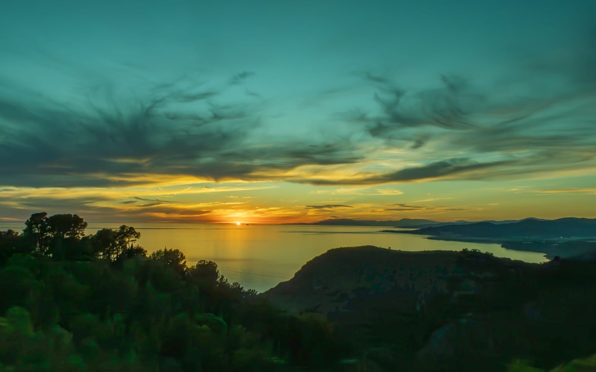 Elevated, private position with uninterrupted sea, sunset and coastline views