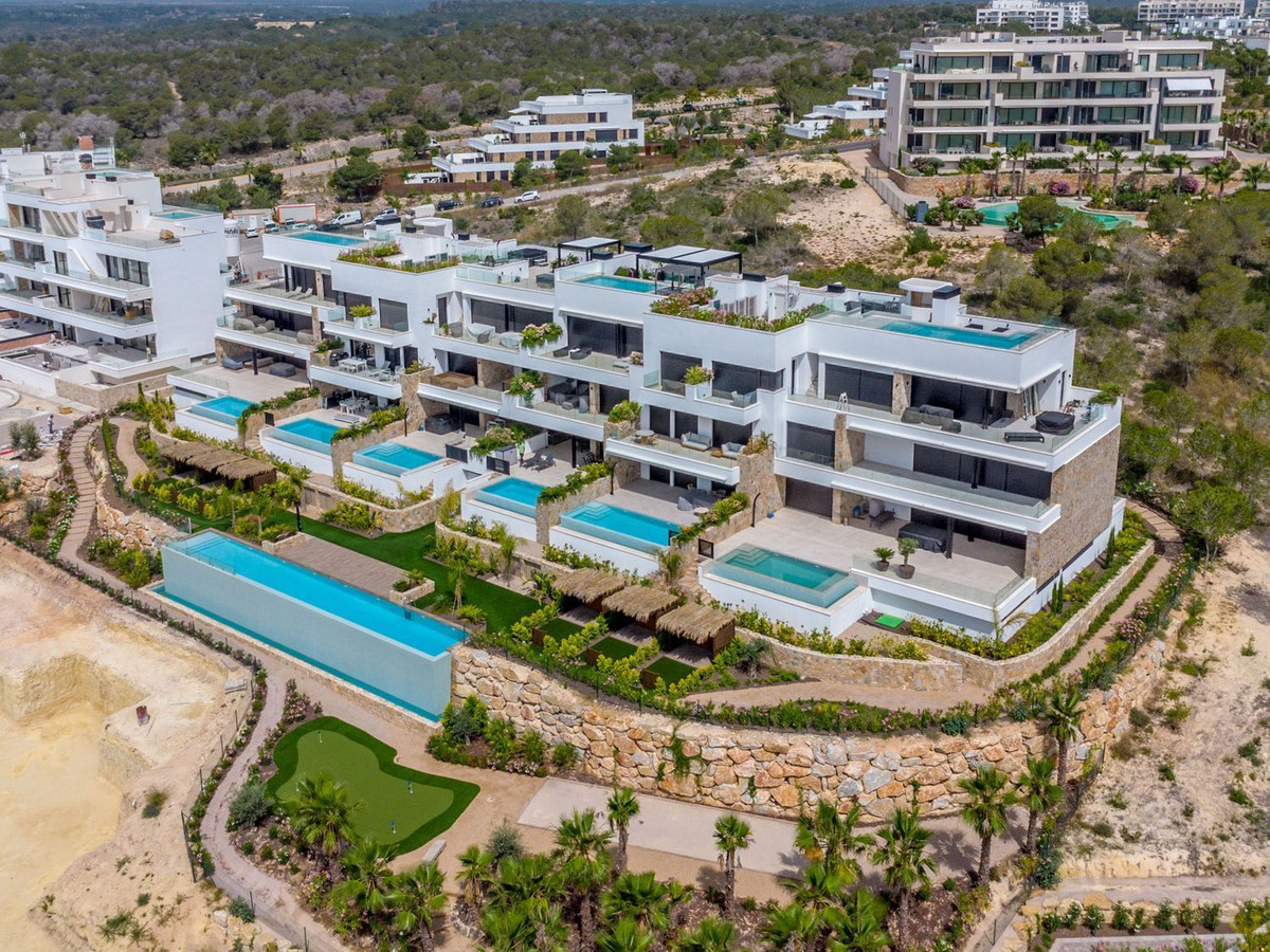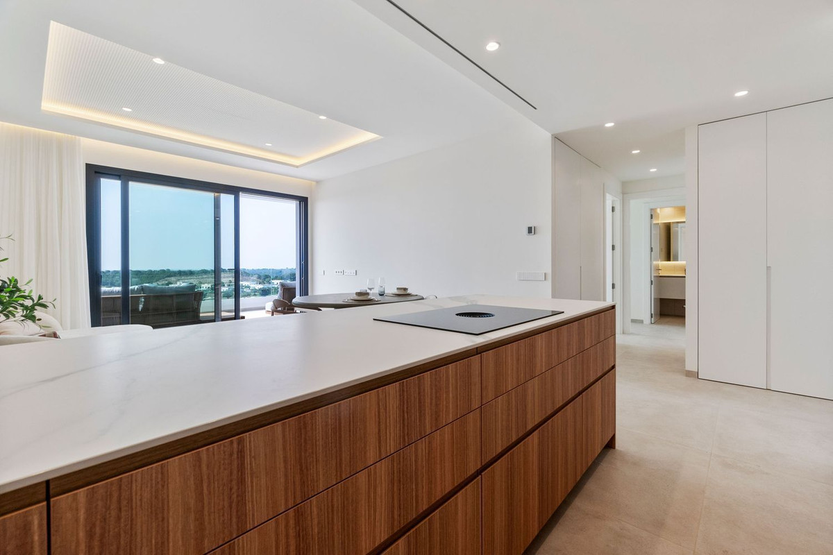 A brand-new apartment, never lived in and tastefully decorated, located within the award-winning Las Colinas Golf & Country Club. This property boasts high energy efficiency and offers breathtaking views of the golf course, natural surroundings, and the stunning infinity pool directly in front.~The interior is bright and contemporary, with a distinct Mediterranean style and earthy tones that create a warm, homely atmosphere. The spacious kitchen opens up to the living room, which offers ample space for both a lounge and dining area. Outside, you'll enjoy a charming terrace with access from the living room and both bedrooms. The apartment includes two bathrooms, one of which is en suite to the master bedroom. The communal areas have been designed for complete relaxation and well-being, featuring a magnificent infinity pool, landscaped gardens, a gym, Turkish bath and sauna. A private parking space and storage room are included in the price. Las Colinas Golf & Country Club is an award-winning resort located in Orihuela Costa, on the southern Costa Blanca. It features several restaurants, a sports complex, hiking trails, and a modern fitness centre. Its privileged location allows you to enjoy the beach, shopping, and services – all within a peaceful, private and exclusive setting.