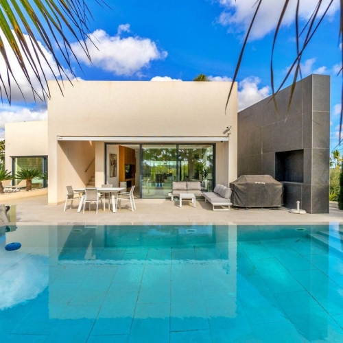 3-Bedroom Villa Adelfa in Las Colinas Golf & Country Club~~Discover Villa Adelfa, a beautifully designed southwest-facing home set on a 1,380m2 plot in the prestigious Las Colinas Golf & Country Club. With 134m2 of living space on one level and the possibility to expand by an additional 100m2, this villa offers both elegance and future potential.~~Open-Plan Living~The spacious kitchen, dining, and living area is designed for modern comfort, featuring floor-to-ceiling sliding windows that connect the interior with the outdoor terrace and private infinity pool overlooking the breathtaking valley landscape.~~Three Spacious Bedrooms~•The master suite includes a walk-in dressing room, an en-suite bathroom, and direct access to the garden and pool.~•Two additional bedrooms come with fitted wardrobes and have private access to the lush back garden.~•A stylish shared bathroom serves these rooms with elegance.~~Expansive Outdoor Space~The villa sits on an extra-large plot, ensuring privacy and ample space for outdoor living, relaxation, and future expansion. With parking for three or more cars, convenience is guaranteed.~~Perfectly blending modern architecture with its natural surroundings, Villa Adelfa is an exceptional opportunity for anyone seeking a luxurious yet peaceful lifestyle in one of Spain's most exclusive communities.