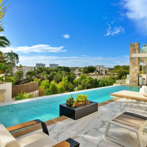 Exceptional 6-bedroom villa located in the prestigious Madroño community of Las Colinas Golf & Country Club. Set on a private plot with stunning views over the golf course, this home combines contemporary architecture, high-quality finishes, and an effortless indoor–outdoor lifestyle.~~The villa features six spacious bedrooms, four bathrooms, and a guest toilet. The open-plan living area connects to a modern kitchen and large terrace with an impressive infinity pool overlooking the natural landscape.~~The basement level includes a home cinema, fitness room, and a flexible multi-use space with the option to create an additional bedroom, office, or studio.~~Located within one of Spain's top residential resorts, residents benefit from 24-hour security, full privacy, gourmet dining, sports facilities, nature trails, and one of Europe's best golf courses.