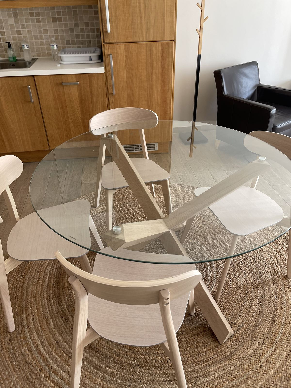 The property offers an open-plan living, dining, and kitchen area with a small balcony, ideal for enjoying the buzz of the marina, designer boutiques, and passing yachts. It also includes a bedroom and a shower room.