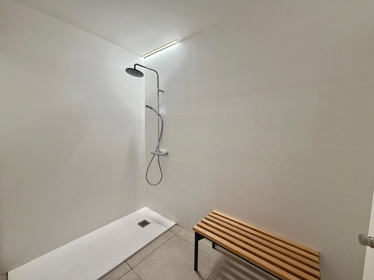 The property features a magnificent outdoor area consisting of 107 m² of private garden and a 16 m² covered terrace, ideal for enjoying the climate throughout the year. The completely fenced garden provides direct access to the communal areas and the pool, offering comfort and privacy.