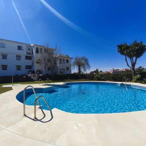 Located in Riviera del Sol, next to numerous golf courses, less than 10 minutes from Fuengirola and 15 minutes from Marbella. This first-floor corner apartment (no elevator) features a large living room with a terrace, a fully renovated and furnished open-plan kitchen with appliances, three bedrooms with built-in wardrobes, and two bathrooms, one of which is en-suite.