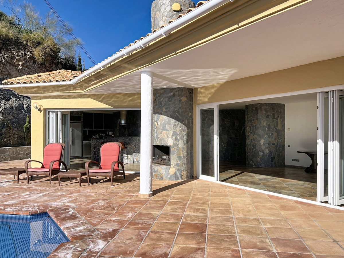 This beautiful villa in Algarrobo combines spaciousness, light and comfort, offering an ideal lifestyle to enjoy the tranquility and climate of the Costa del Sol. In the main house we find a large American kitchen open to the living-dining room, which is characterized by its luminosity and generous spaces, perfect for family gatherings or with friends. The house has two bedrooms, both with en-suite bathrooms, guaranteeing comfort and privacy. The property also has a guest apartment, which includes a small kitchen and a full bathroom, offering independence and flexibility for family or visitors. Outside, the villa has a private swimming pool, a barbecue area, a laundry room and a garage, as well as a large plot of 2,500 m2, ideal for enjoying the outdoors, installing leisure areas or creating a personalised garden. The property boasts spectacular sea and mountain views, adding unique value and charm. A unique, bright and versatile property, perfect both as a main residence and as a second home on the Costa del Sol. We are delighted to be able to present this property to you soon, either personally or via virtual viewing. Because this world is unique - like our Axarquía. In Andalusia. On the Costa del Sol. Here, on the sunny side of life...