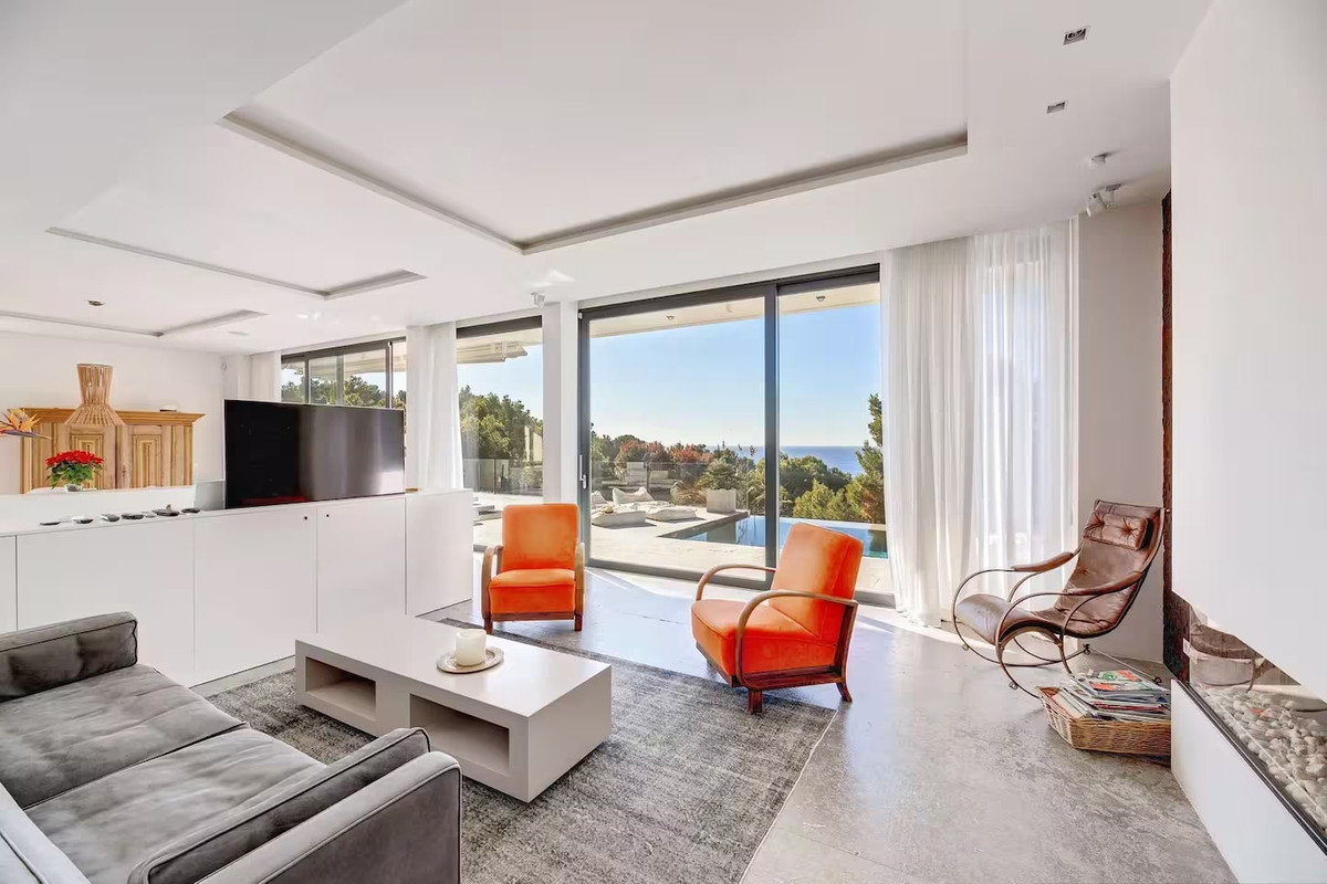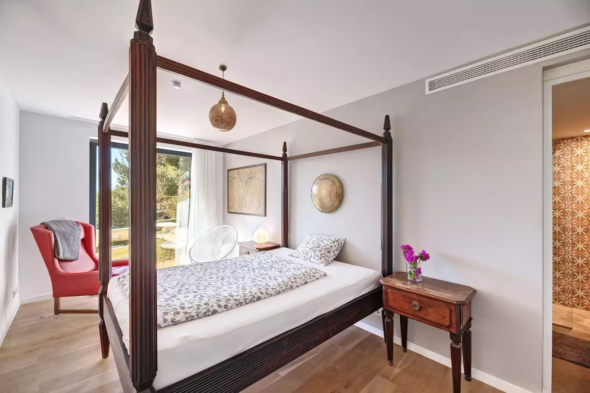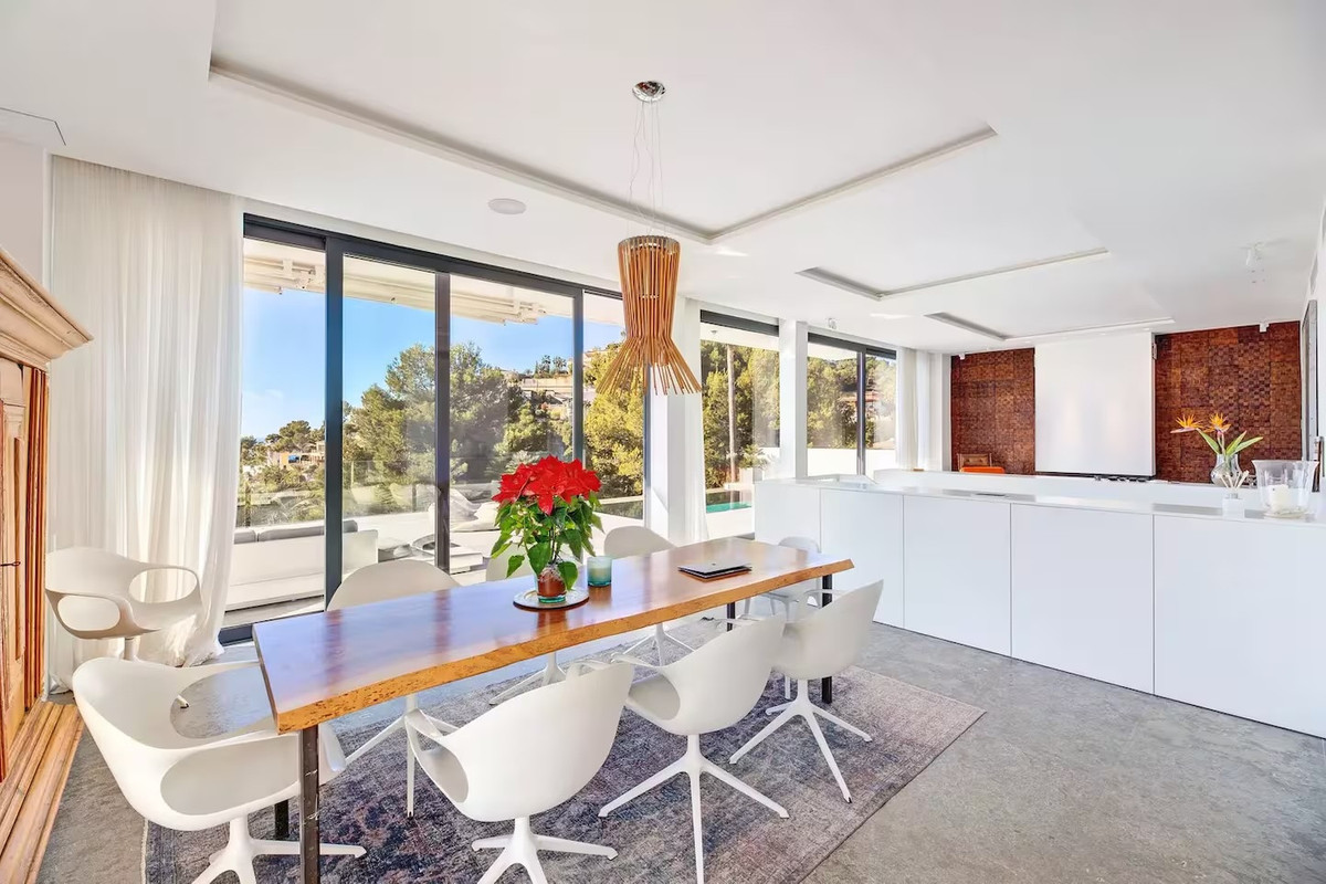 The villa features five bedrooms and four bathrooms plus a guest WC, offering generous accommodation for residents and guests alike. Living areas flow effortlessly onto sun-drenched terraces, while outdoor spaces have been designed for year-round enjoyment of Mallorca's climate.