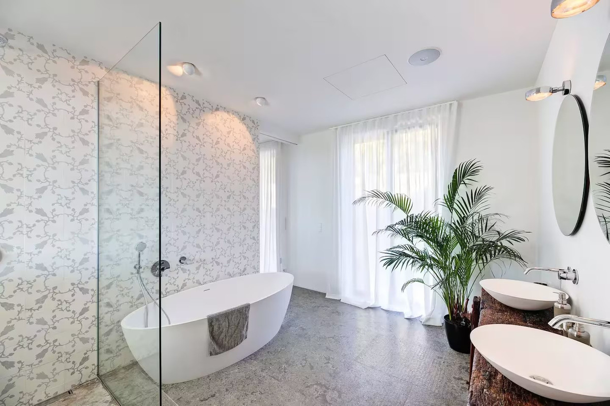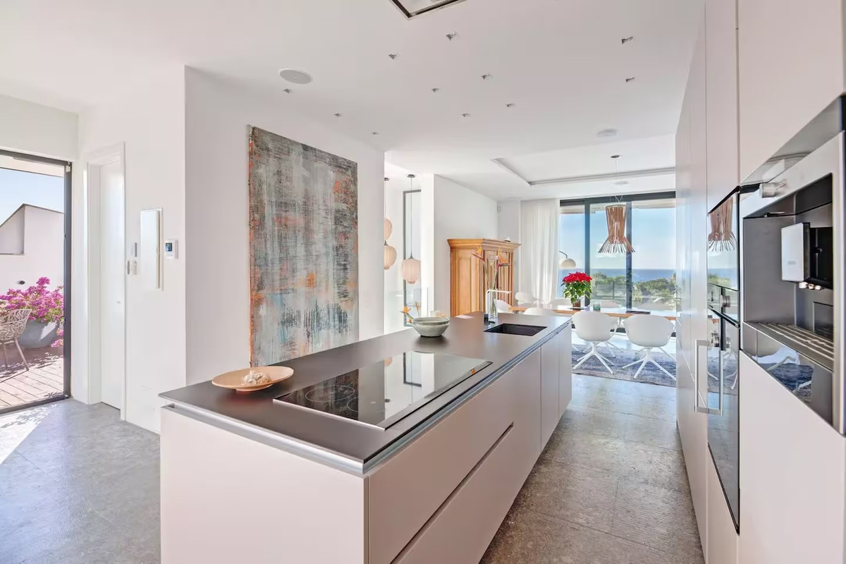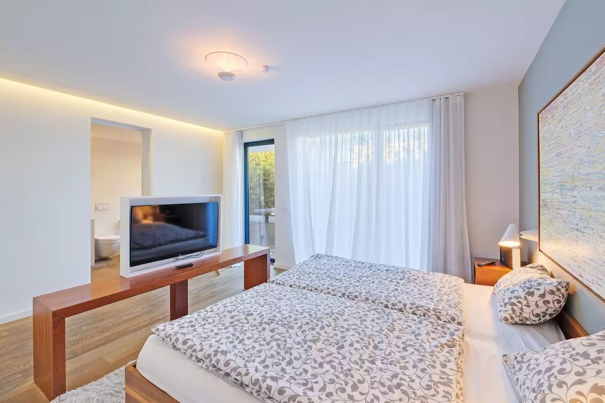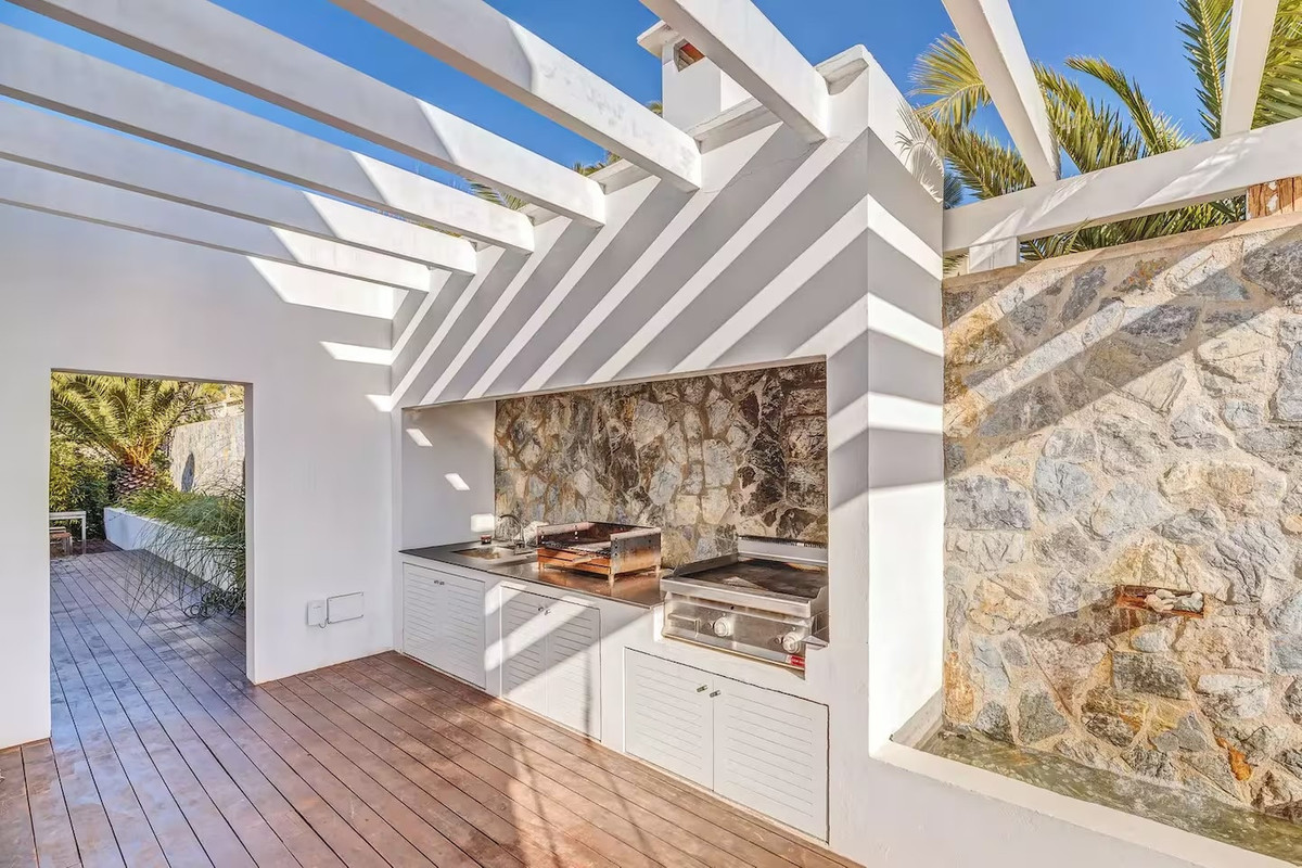 The villa features five bedrooms and four bathrooms plus a guest WC, offering generous accommodation for residents and guests alike. Living areas flow effortlessly onto sun-drenched terraces, while outdoor spaces have been designed for year-round enjoyment of Mallorca's climate.