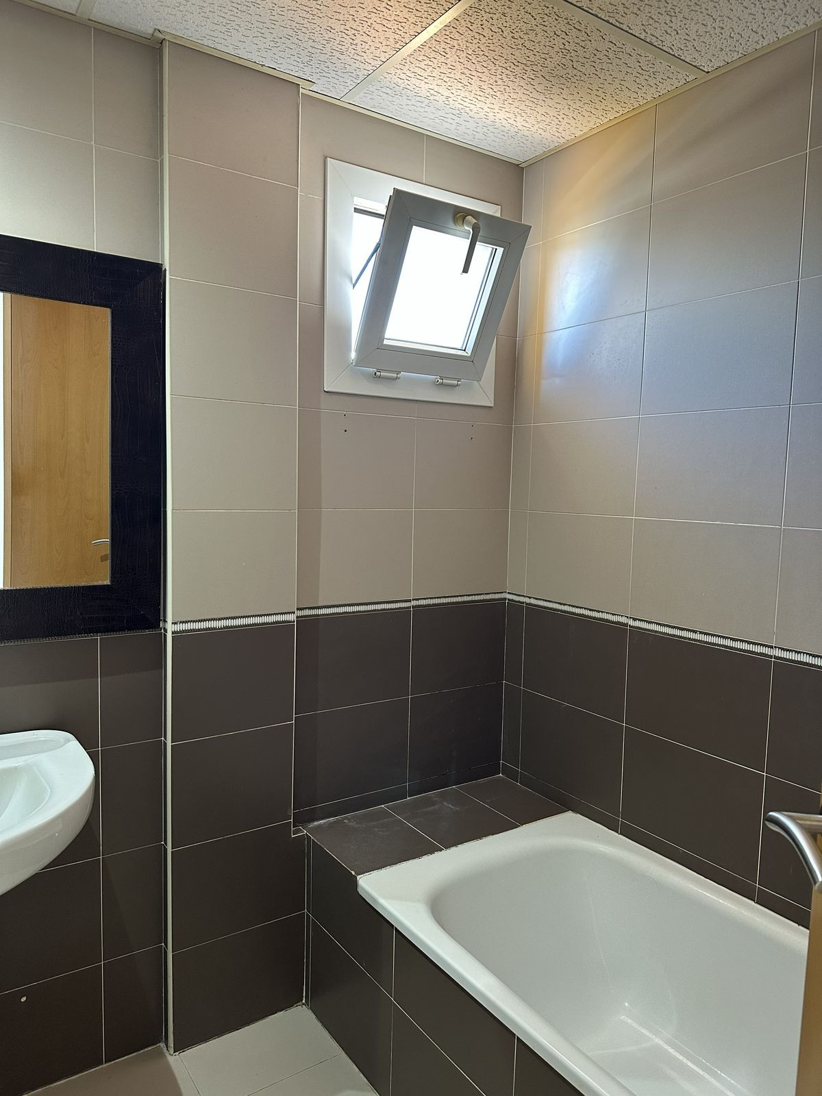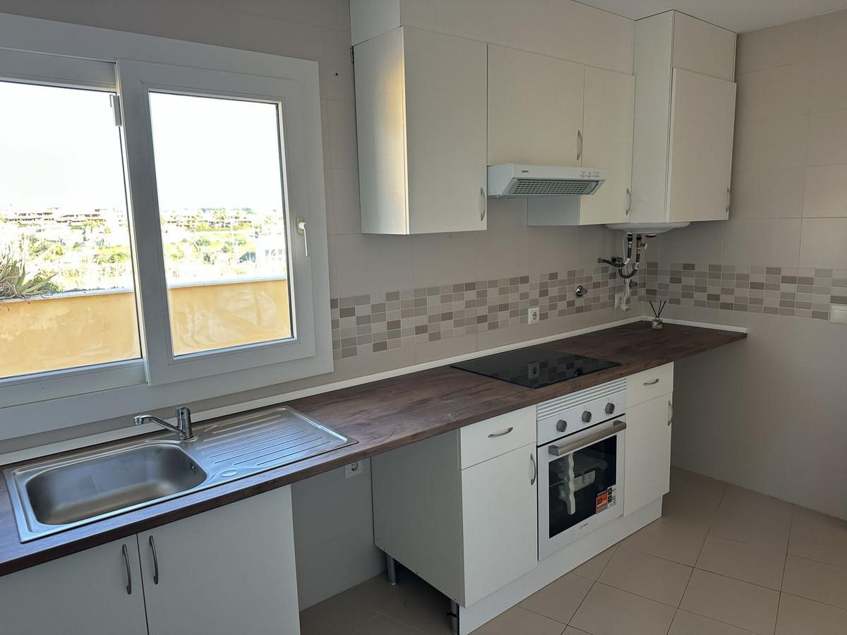 The property features two bright bedrooms, one bathroom, and a spacious living room with direct access to the terrace, creating a light and airy living space. The kitchen is fully equipped with new cabinetry and a practical, functional layout with good storage.