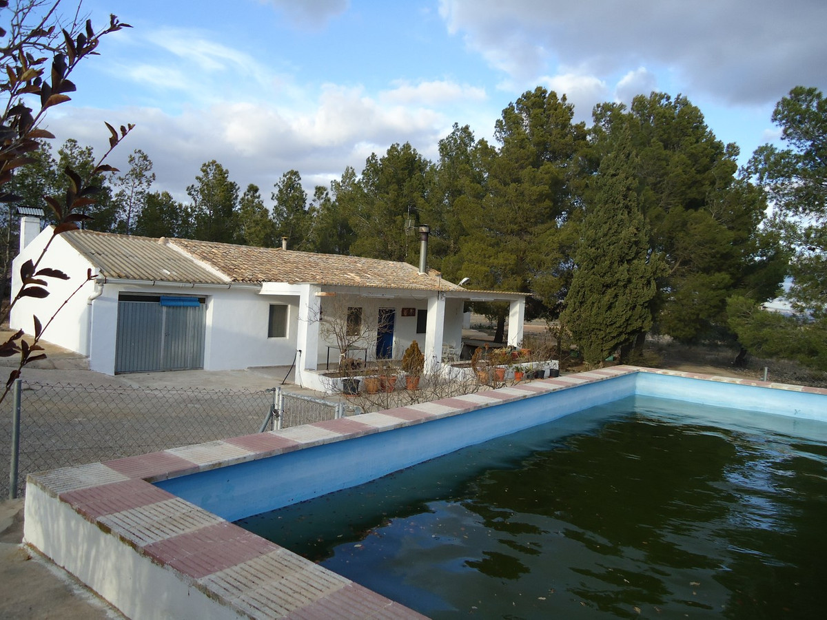 Charming detached country house located just 6 km from Yecla, set in a peaceful and private area with fantastic open views and forests and mountains directly behind the property. The total 200 m² built area includes the main living accommodation, an attached annex, a separate 40 m² garage, and the swimming pool.