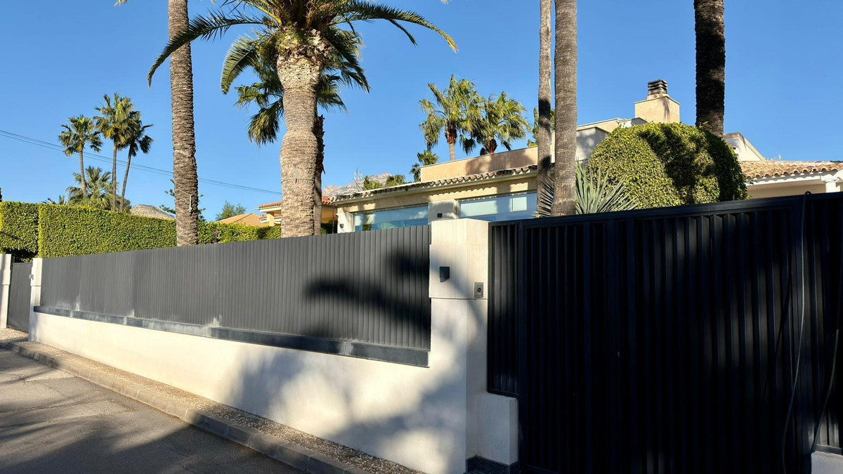 We present to you an exclusive luxury villa located in a prestigious residential area between Benidorm and La Nucía. The property is situated on a spacious plot of 984 m² and has a built area of 258 m², distributed over two floors that perfectly combine elegance, comfort, and functionality.Upon entering the house, a cozy hallway leads to a spacious and bright living room, an elegant dining room, and a charming glazed terrace with marble floors, from where you can enjoy beautiful views of the well-tended garden surrounding the house.The home has been completely renovated using high-quality natural materials, including premium wooden floors. The resting area has two comfortable bedrooms that share a complete bathroom, in addition to a large master suite with a spacious dressing room and a bright en-suite bathroom with natural light, equipped with a bathtub, independent shower, and double sink.Additionally, the home features an independent bedroom with a private bathroom, ideal for guests or family members, offering maximum comfort and independence. This space is conveniently connected to the fully equipped kitchen and the laundry area.The kitchen has direct access to a side terrace, perfect for outdoor dining. From there, you can access an impressive glazed barbecue area with a courtesy bathroom and direct access, through an elegant wooden deck, to the pool and solarium.On the plot, there is also a space designated for the storage of sports and nautical equipment. The upper floor has a spacious multifunctional room that can be used as an office, game room, or leisure area, in addition to two cozy guest bedrooms that share a complete bathroom.The garden, carefully designed, combines different shades of green with majestic palm trees and abundant vegetation, creating an intimate, relaxing, and very exclusive atmosphere.The urbanization offers 24-hour private security, a communal pool, tennis courts, and a social club.A unique opportunity to acquire a truly exclusive property in one of the most sought-after areas of the Costa Blanca. Contact us to arrange a private visit.
