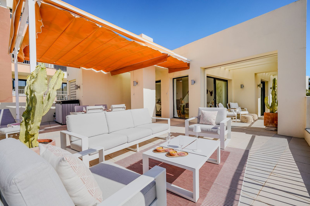 This exceptional two-bedroom penthouse is located in the prestigious Samara Resort in Altos de Los Monteros, one of Marbella's most peaceful and elevated residential areas. With a generous 106 m² terrace and uninterrupted panoramic views over the Mediterranean Sea, Gibraltar and even the African coastline on clear days, this home offers a truly privileged setting. A section of the terrace is fitted with glass curtains, allowing you to enjoy the outdoor space comfortably even during the winter months.