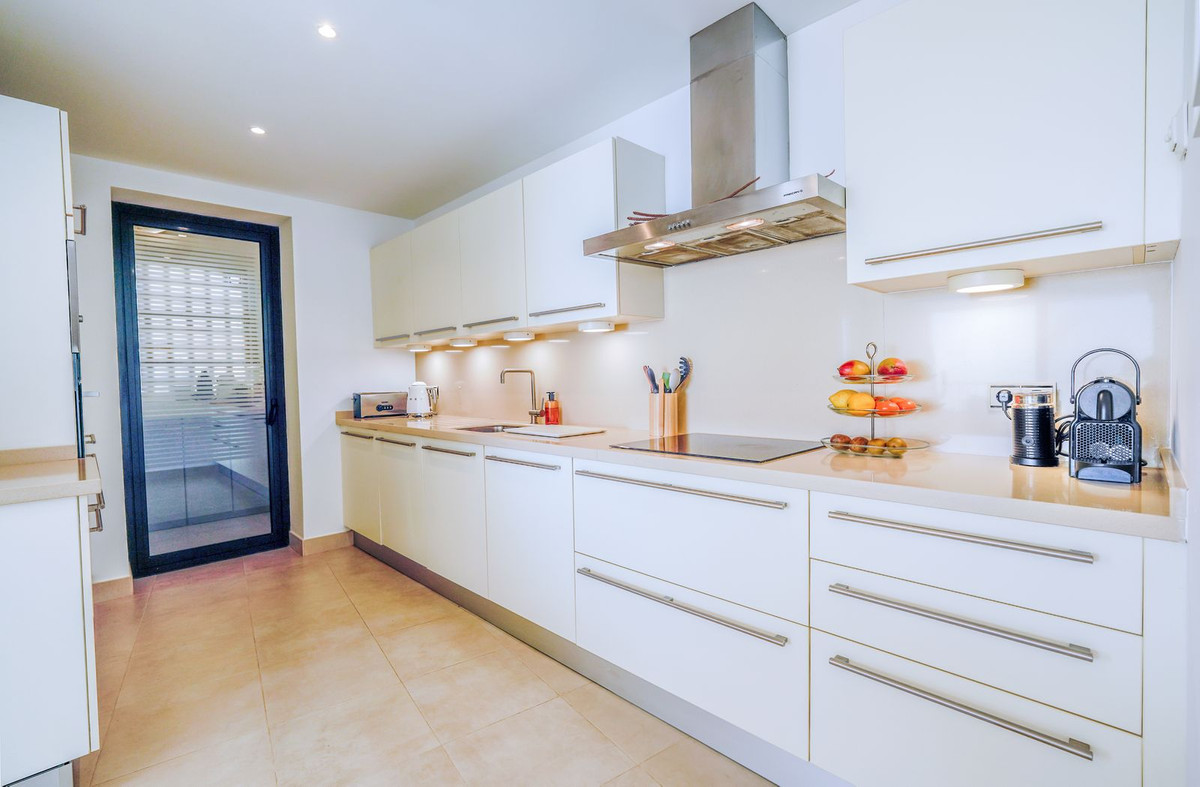 The interior is bright, modern and designed for comfort. Both bedrooms are positioned to maximize the sea views — imagine waking up with the Mediterranean views directly in front of you. Each bedroom has its own en-suite bathroom, built-in wardrobes, electric shutters and direct access to the expansive terrace.
