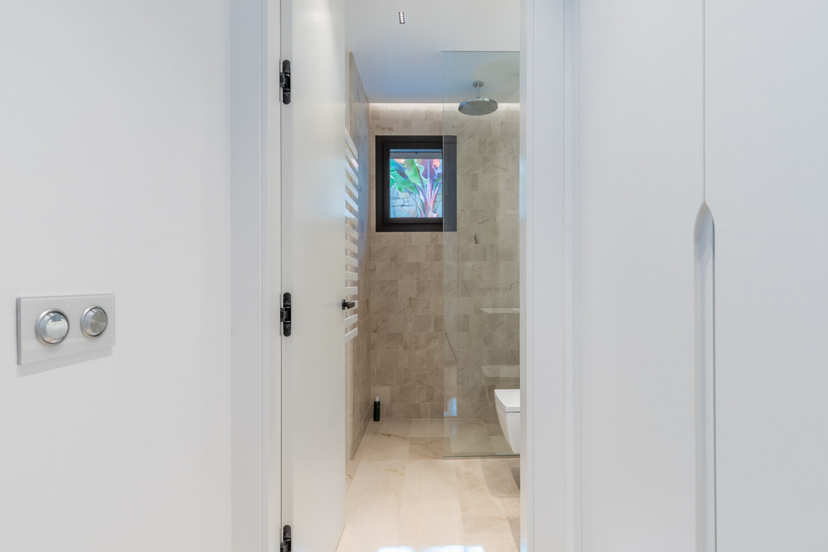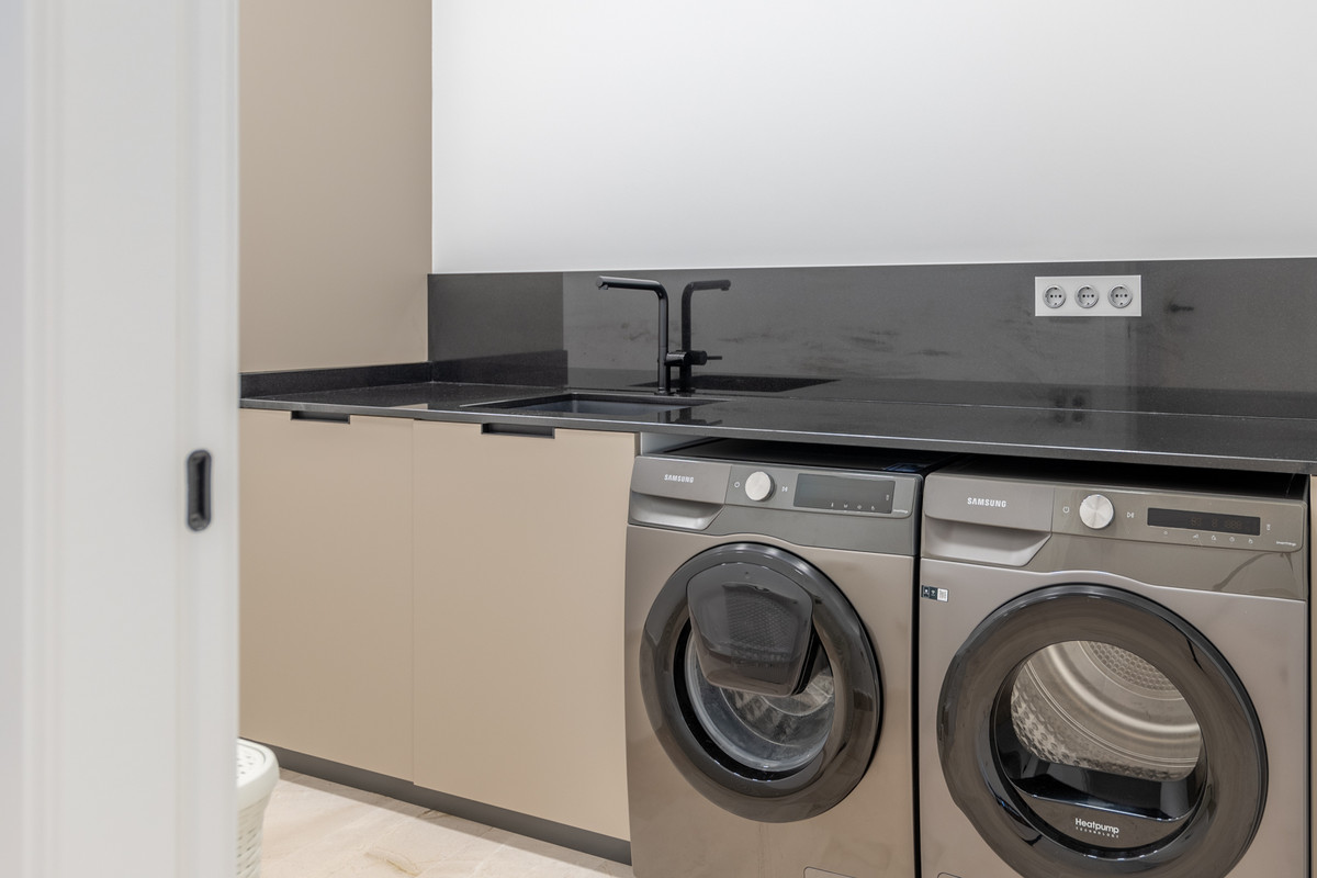 Equipped with high-end features, including 15 photovoltaic panels, a heat exchange system, underfloor heating, and central air conditioning, the villa ensures superior comfort and energy efficiency. The saltwater pool, crafted from natural volcanic green stone from Bali, and the use of natural stone throughout both the interior and exterior add further to its timeless elegance.