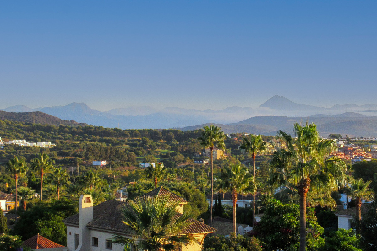 This stunning southwest-facing, two-story villa with a distinctive tower room is situated on an elevated corner plot in Sotogrande's prestigious B Zone. Offering exceptional privacy, abundant natural light, and captivating views of the Sierra Bermeja mountains, this home is designed for luxurious living.