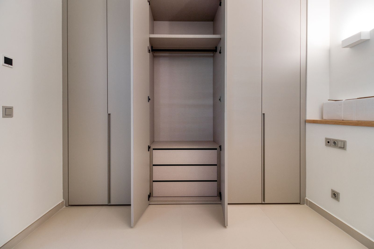 A distinctive feature is the master bedroom's sliding wall system, which opens seamlessly into the living room — a sophisticated and flexible design element that allows you to create an open-plan loft ambiance or complete privacy as desired.