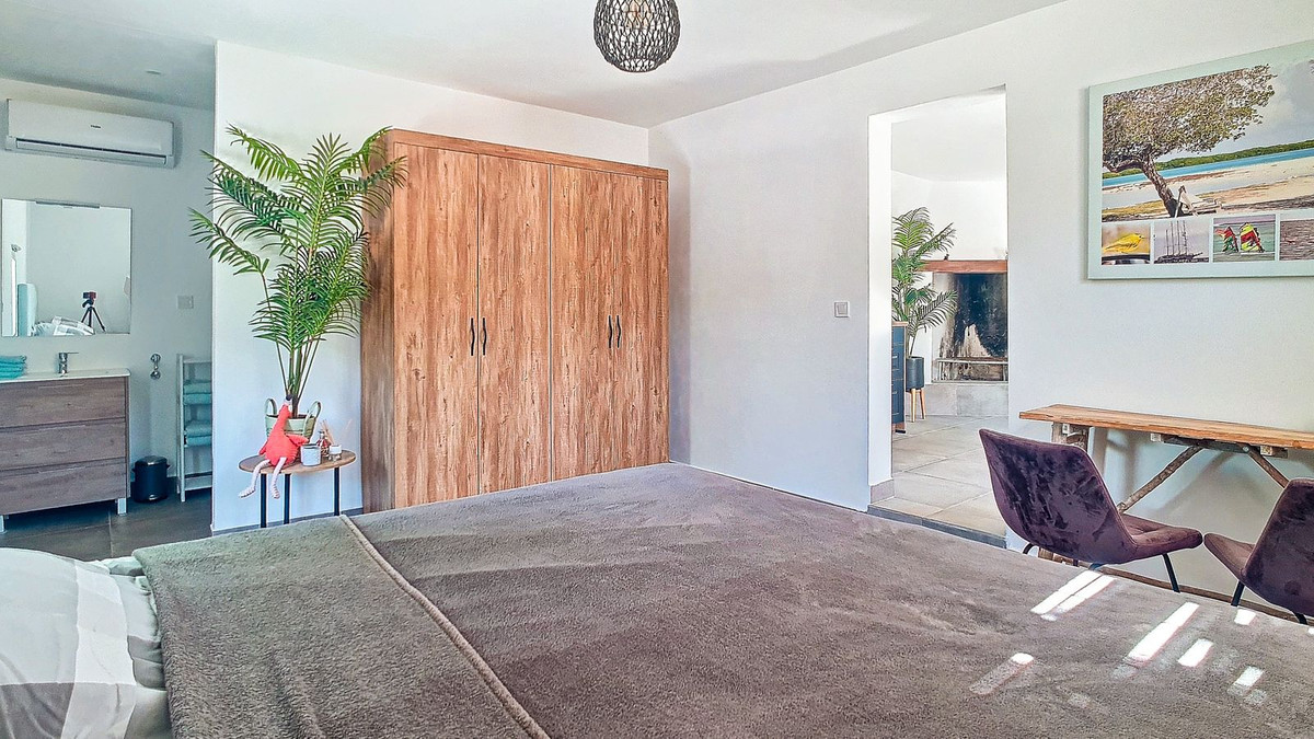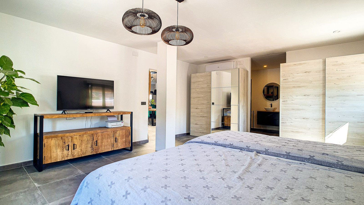 Modern loft-style main house with fireplace, master suite, terrace and jacuzzi.