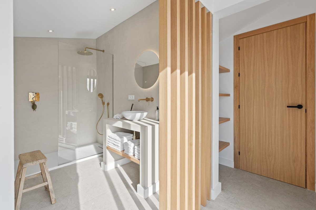 The villa offers 4 spacious bedrooms, each with its own ensuite bathroom, as well as two guest toilets. The master suite occupies the upper level and features a private terrace with spectacular sea views.