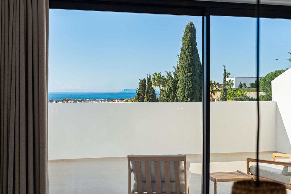 Located in the prestigious area of Paraiso Alto (Benahavís), Villa Jolie is a fully renovated semi-detached design villa offering panoramic views of the Mediterranean Sea and Gibraltar.