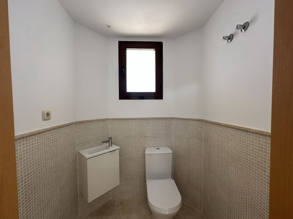 The upper floor houses the sleeping area, with an entrance hall, hallway, two bedrooms with built-in wardrobes and two full bathrooms, offering privacy and comfort. It also features a large open terrace, ideal for enjoying the Costa del Sol climate and stunning panoramic views.