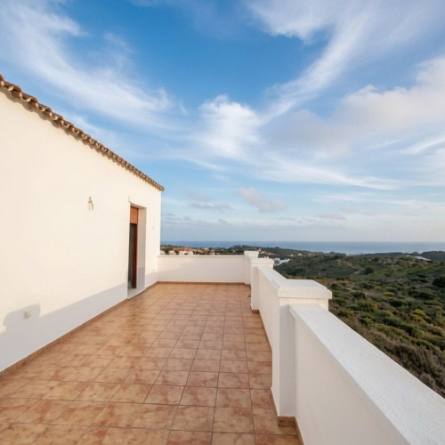 The upper floor houses the sleeping area, with an entrance hall, hallway, two bedrooms with built-in wardrobes and two full bathrooms, offering privacy and comfort. It also features a large open terrace, ideal for enjoying the Costa del Sol climate and stunning panoramic views.