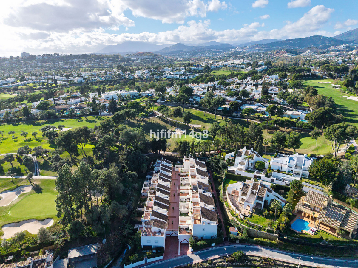 This stunning 3-bedroom townhouse is for sale in the highly sought-after El Alcornoque urbanisation in Nueva Andalucía, one of Marbella's most prestigious areas. Nestled front line to the renowned Aloha Golf Course, this exclusive development of just 22 units offers privacy, tranquility, and beautifully maintained communal gardens with a refreshing pool.