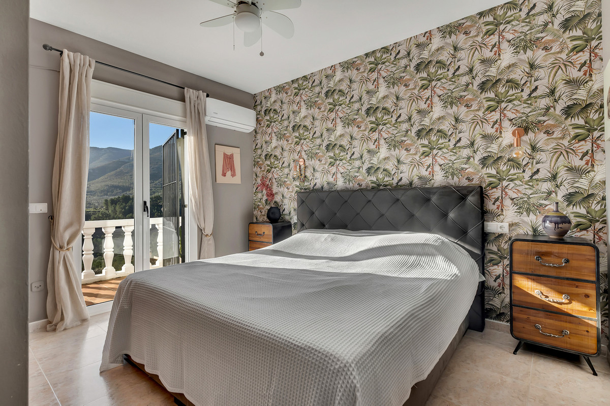 The main entrance is via the covered naya. This charming living space is the perfect spot to enjoy your morning coffee, with the most stunning view over the mountains. The living and dining room is filled with natural light and has a feature pellet burner. The large modern fully equipped kitchen is perfect for those who love to cook and entertain, with large countertops and plenty of storage space. From the kitchen you have access to a cozy terrace, covered with rustic bamboo to give natural shade in the hot summer months.