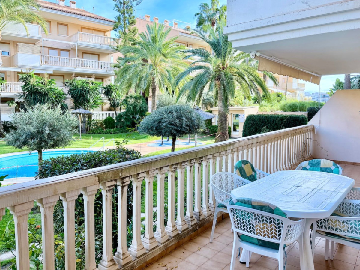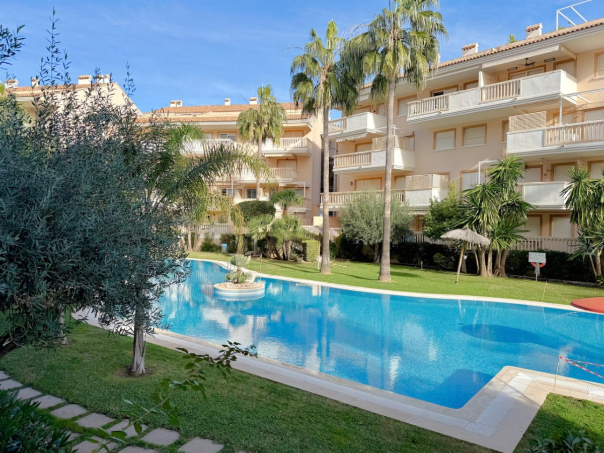Premium location: next to the La Fontana canal and close to Arenal beach in Jávea. 3 bedrooms and 2 bathrooms, ideal for families or seasonal living. Private terrace with views of gardens and common areas. Bright living room and equipped kitchen, perfect for Mediterranean living. Parking space and storage included, adding convenience and value to the property. Communal pool and Mediterranean gardens. Building with elevator and easy walking access to services. Excellent investment potential due to location and local demand. Market Data & Local Statistics