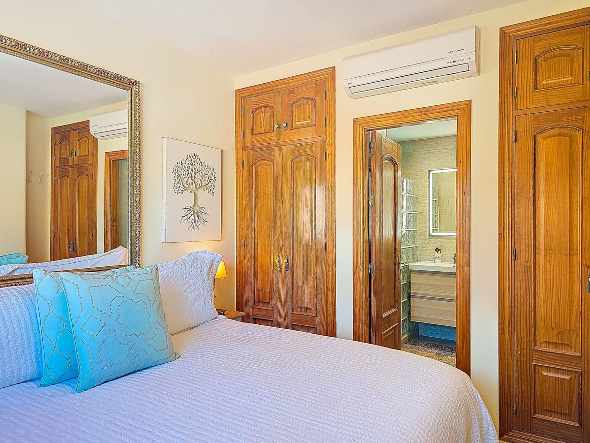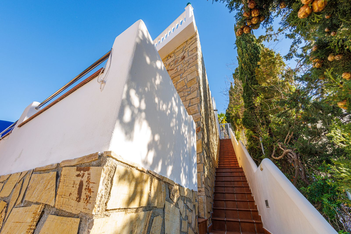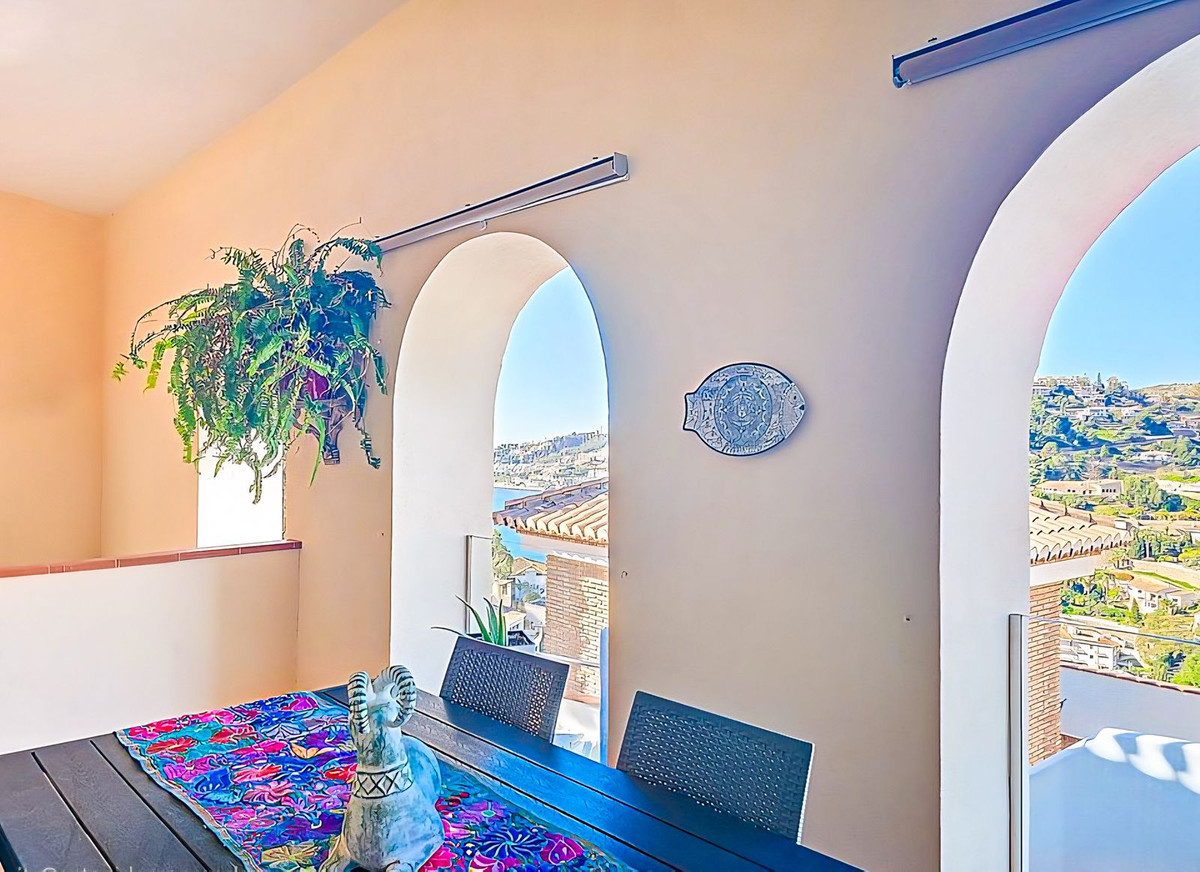 Surrounding the property are several terraces, each with its own atmosphere and plenty of shaded areas. Charming staircases connect all levels and lead to the elevated saltwater swimming pool, where privacy and relaxation are guaranteed. A special feature of this villa is the secluded yoga, hobby or living space with beautifully finished arched windows offering a magical view of Cotobro beach and the Marina del Este marina. Here you can completely unwind. From this space, you also have access to a separate apartment and the impressive roof terrace, where you can enjoy meditation, relaxation and the spectacular sunset over the sea in complete serenity.