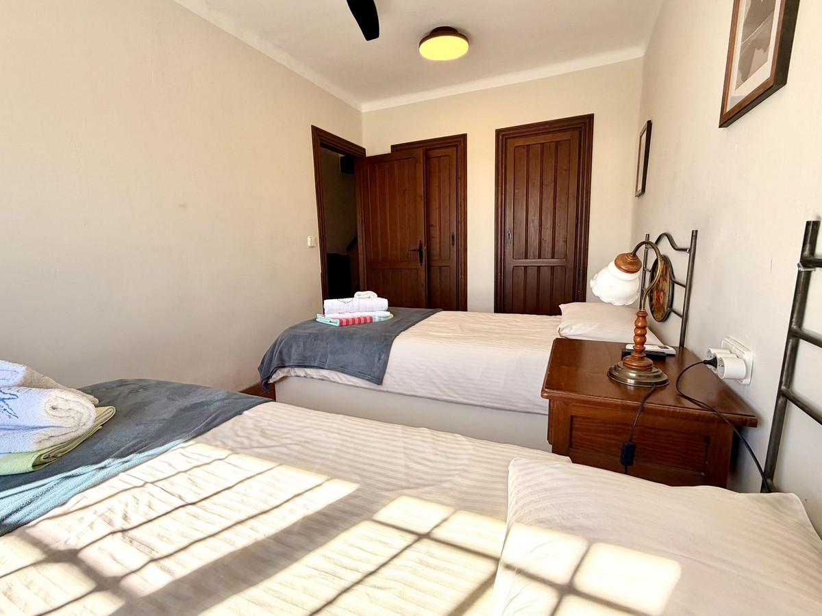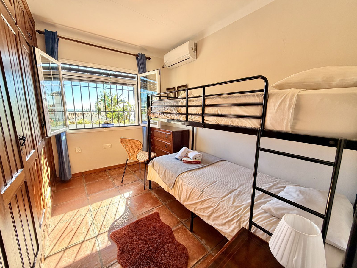 The house is distributed over two floors. On the ground floor, there are three bedrooms and two bathrooms, as well as a laundry area and entrance hall, ideal for storing beach equipment, kayaks, or SUPs. The upper floor features the master bedroom with an en-suite bathroom, an additional bathroom, a fully equipped kitchen, and a spacious living-dining area with TV space. From this floor, you can access a beautifully furnished terrace with panoramic views of La Herradura Bay, perfect for enjoying the sun during the day or watching the sunset in the evening.