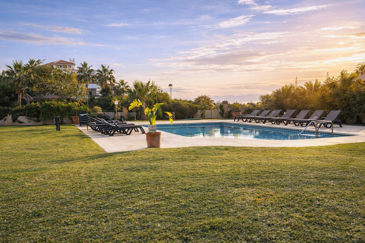 Situated in Estepona East, one of the most desirable residential areas on the Costa del Sol, the property is just a five-minute walk to the beach, beach bars and restaurants. It is adjacent to La Resina Golf & Country Club and close to Selwo Aventura, making it particularly attractive for golf property buyers in Estepona. Hospiten Hospital is less than 1 km away. Estepona centre is 5–8 minutes by car, Puerto Banús and Marbella are 15–20 minutes away, and Málaga International Airport can be reached in approximately 45 minutes via the AP-7.