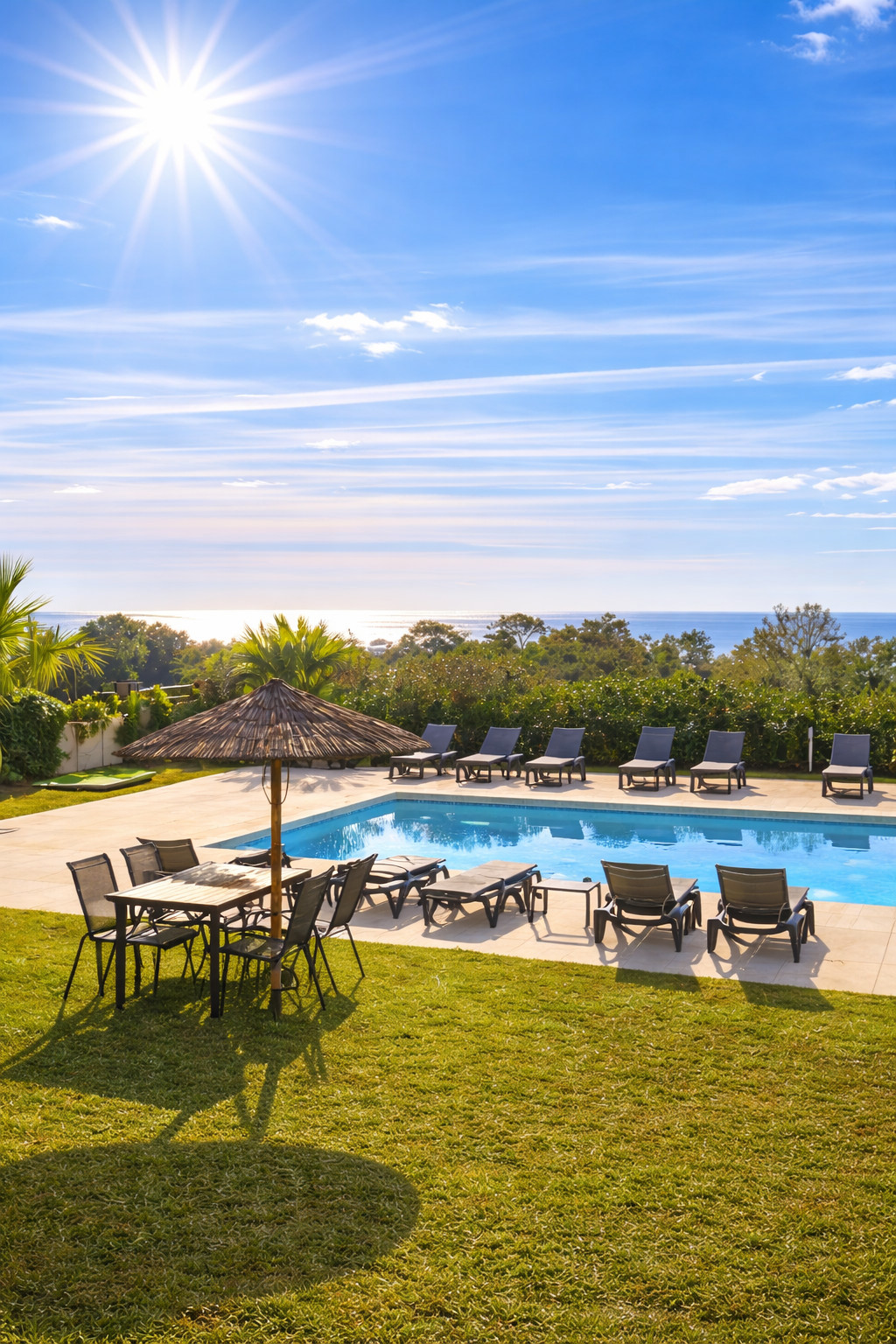 The property stands out for its generous 74 m² of terraces, a key feature for buyers searching for a ground floor apartment with large terrace in Estepona. The main covered terrace includes a Lumon-style glass curtain system, allowing year-round use as an extended living room in winter and a fully open outdoor space in summer. The expansive open terrace offers a private Jacuzzi, creating a true Costa del Sol outdoor lifestyle experience with direct access to communal gardens and a year-round swimming pool.