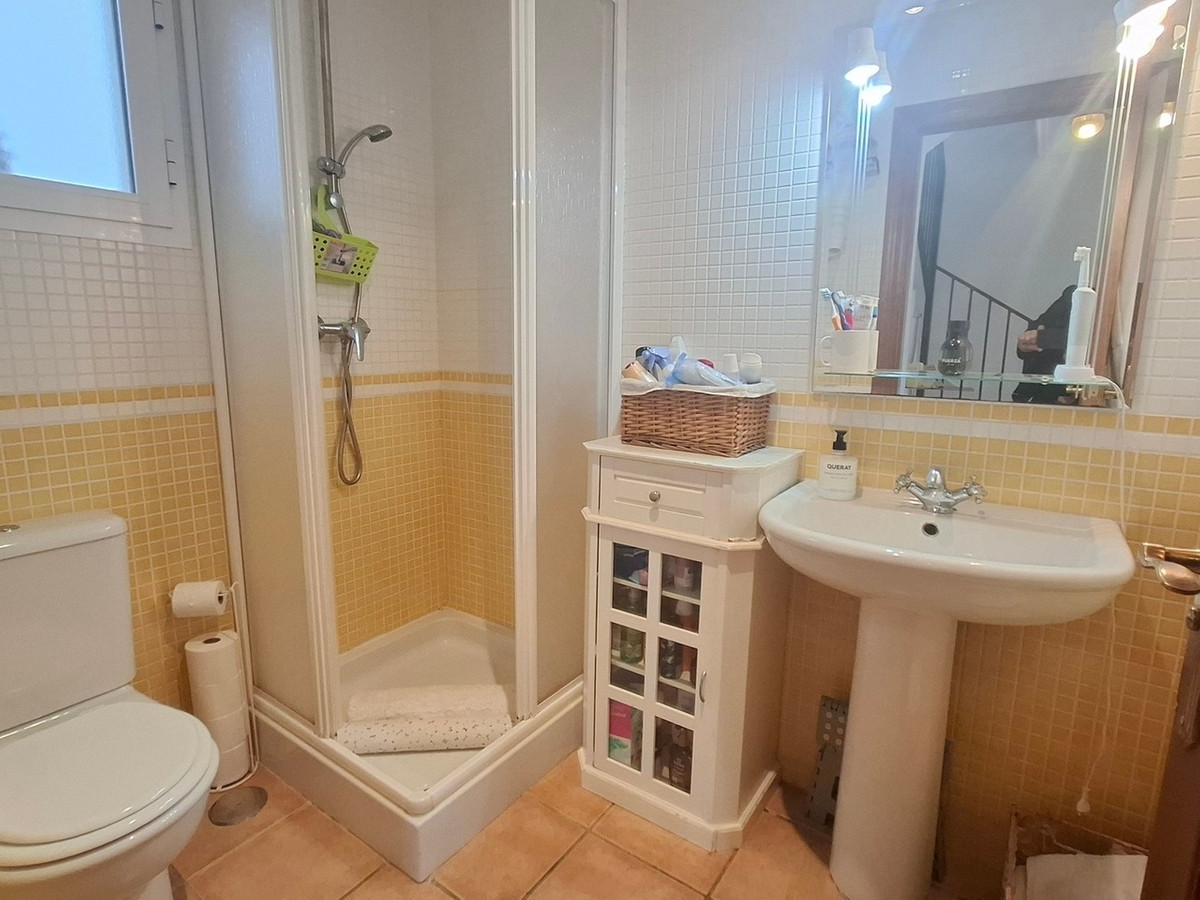 The secure gated community offers excellent facilities, including two swimming pools, one of which is a heated indoor pool ideal for the cooler winter months. There are also well-maintained communal gardens and a separate children’s play area.
