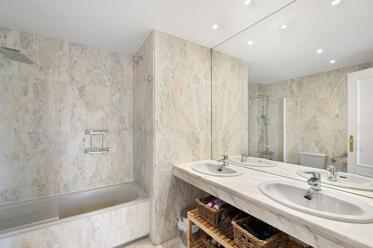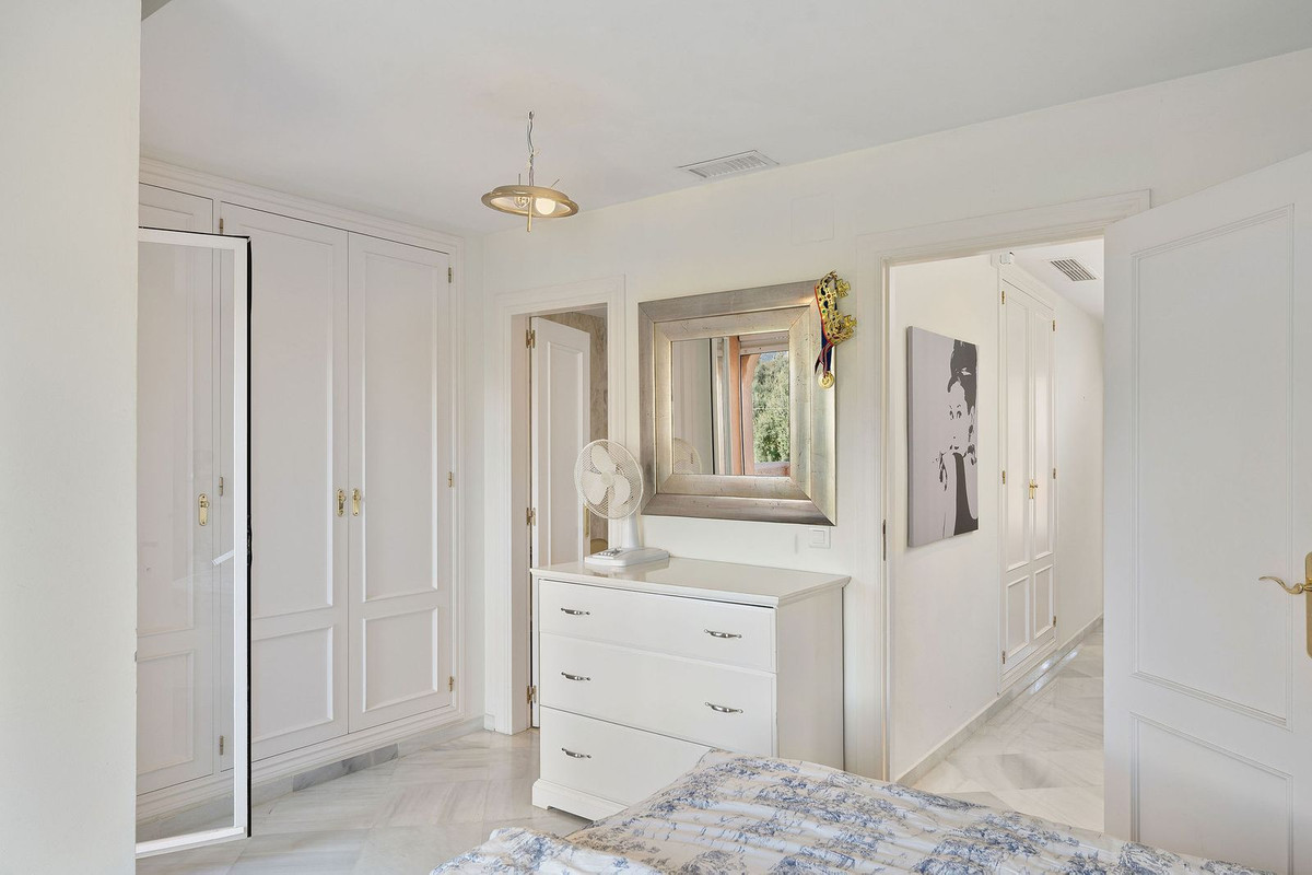 This well presented three-bedroom townhouse spans three spacious levels, combining comfort, space, and a great location in the heart of Nueva Andalucía. A wide selection of restaurants, cafés, bars, and boutiques are within walking distance, while Puerto Banús, sandy beaches, and renowned golf courses are just minutes away. The main floor features a well-sized kitchen with a separate utility room and a split-level dining and living area with an open fireplace. Doors lead to a private terrace with direct access to the communal gardens and swimming pool. All three generous bedrooms have private terraces. The top-floor suite stands out with a large private terrace and an additional terrace with built-in BBQ and open garden views — perfect for outdoor dining and entertaining. Additional features include a private driveway, spacious garage, three en-suite bathrooms, and a guest wc. Located within the sought-after El Palmeral community of just 46 townhouses, residents enjoy two swimming pools, a heated outdoor jacuzzi, sauna, gym, and beautifully maintained gardens in a secure and peaceful setting. A superb opportunity to own a large home in one of Marbella's most desirable areas.