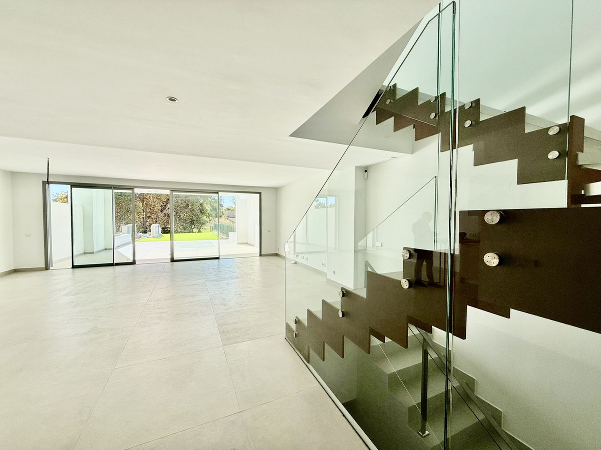This stunning semi-detached house is located in the exclusive community in Guadalmina Alta Marbella, just minutes from San Pedro de Alcántara. With a private communal pool and gym, Treetops offers privacy, security, and a privileged setting near the Guadalmina golf course.