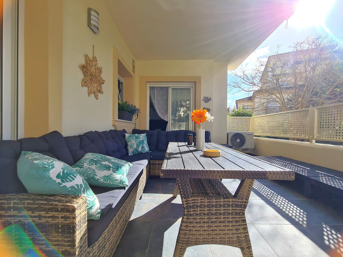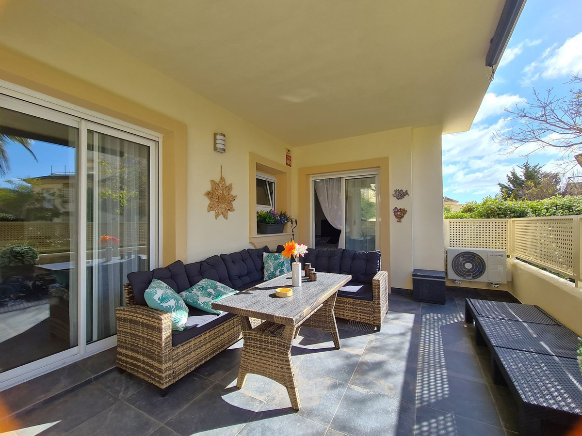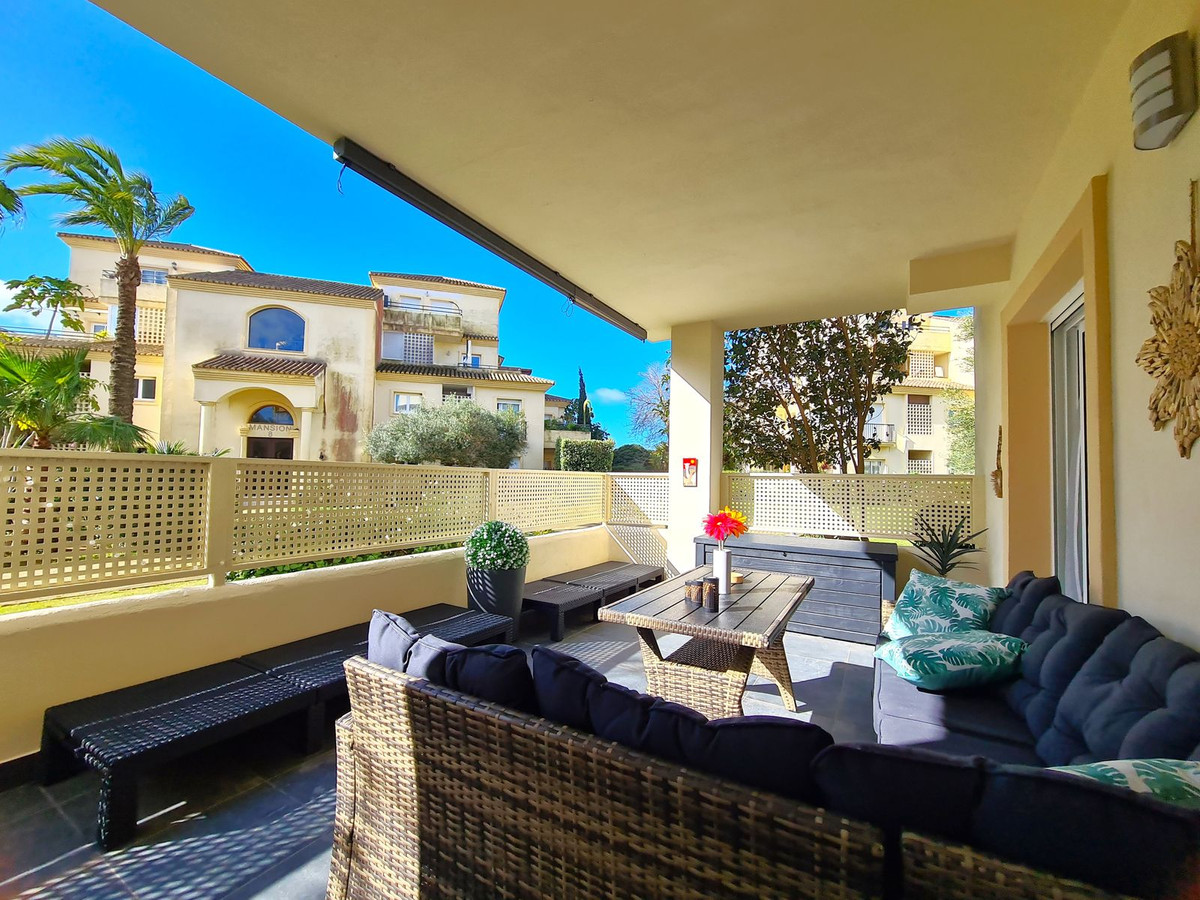 Located in an excellent residential complex just a few minutes' drive from Sotogrande Marina and Alcaidesa Beach. Close to supermarkets, restaurants, and shops. Only 16km from Gibraltar and its airport and a 95-minute drive from Malaga Airport. This ground-floor apartment features a spacious entrance hall leading to the bright and airy living-dining room with a fireplace and direct access to the large, partially covered private terrace and garden. The large, fully equipped kitchen boasts new appliances, modern finishes, and a functional layout, including a separate utility room and a spacious pantry. The hallway leads to the guest toilet and the three large bedrooms, all equipped with built-in wardrobes, air conditioning, access to a second terrace, and en-suite bathrooms. All bedrooms have windows providing abundant natural light and ventilation. The property boasts the convenience of two underground parking spaces, two golf cart spaces, and two storage units. The gated community features 24-hour security, communal swimming pools and gardens, and a recently renovated clubhouse. A viewing is highly recommended!