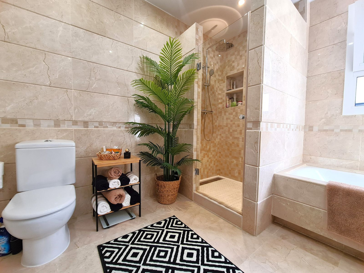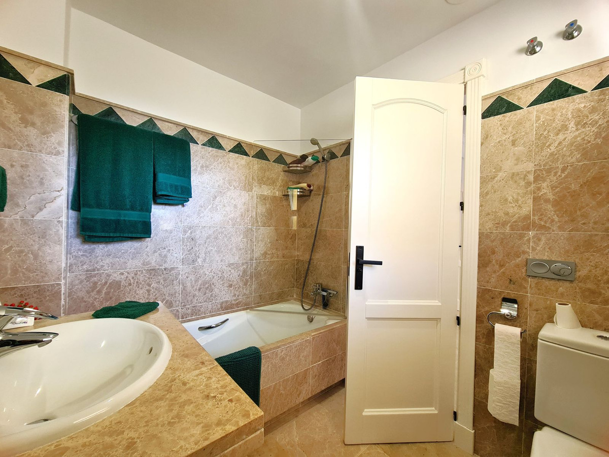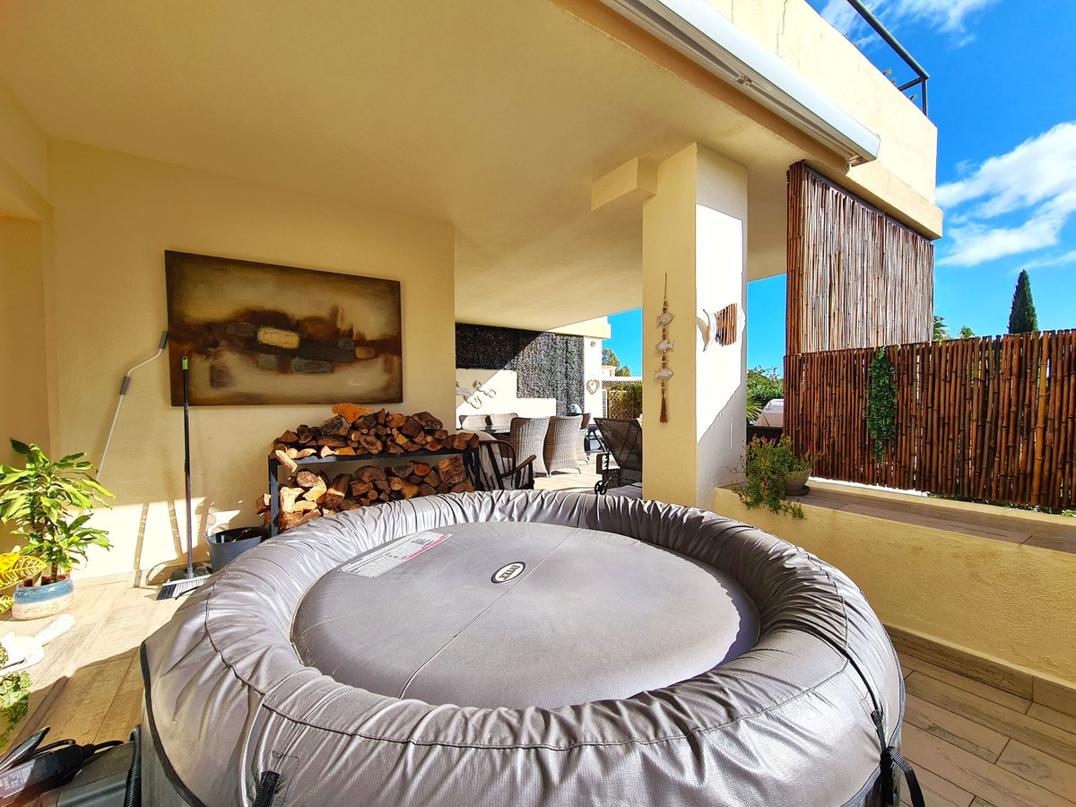 Located in an excellent residential complex just a few minutes' drive from Sotogrande Marina and Alcaidesa Beach. Close to supermarkets, restaurants, and shops. Only 16km from Gibraltar and its airport and a 95-minute drive from Malaga Airport. This ground-floor apartment features a spacious entrance hall leading to the bright and airy living-dining room with a fireplace and direct access to the large, partially covered private terrace and garden. The large, fully equipped kitchen boasts new appliances, modern finishes, and a functional layout, including a separate utility room and a spacious pantry. The hallway leads to the guest toilet and the three large bedrooms, all equipped with built-in wardrobes, air conditioning, access to a second terrace, and en-suite bathrooms. All bedrooms have windows providing abundant natural light and ventilation. The property boasts the convenience of two underground parking spaces, two golf cart spaces, and two storage units. The gated community features 24-hour security, communal swimming pools and gardens, and a recently renovated clubhouse. A viewing is highly recommended!