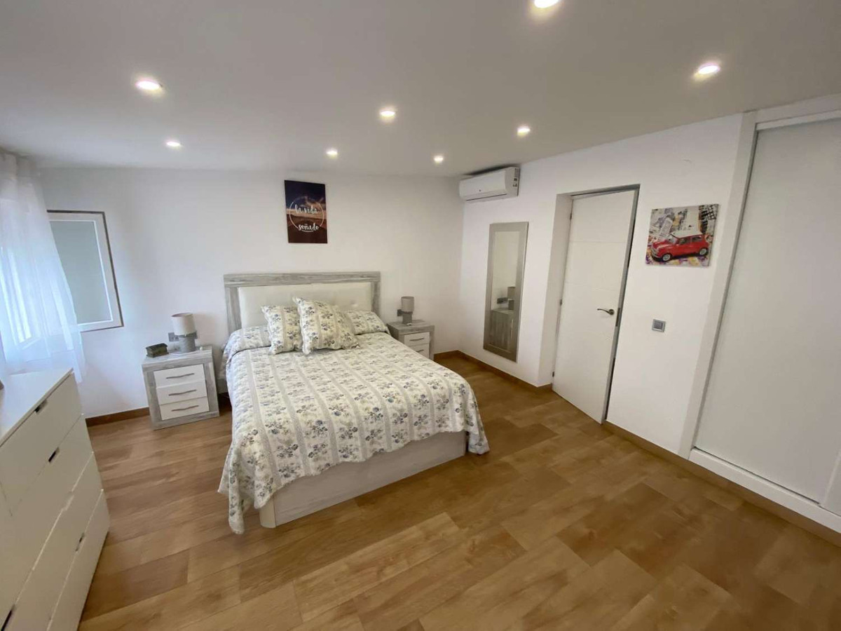Excellent semi-detached villa for sale in Los Boliches. It sits on a 122 m² plot and has 135 m² of living space. The property features 4 bedrooms and 2 bathrooms, distributed as follows: the ground floor comprises an open-plan entrance hall, living-dining room, and kitchen, plus an additional bedroom (currently used as an office), a bathroom, and a storage room. The upper floor comprises 3 bedrooms and 1 bathroom. The ground floor also includes a terrace at the entrance and another accessible from the living room. The location is superb, with all amenities nearby and excellent access to the motorway. There are no community fees.