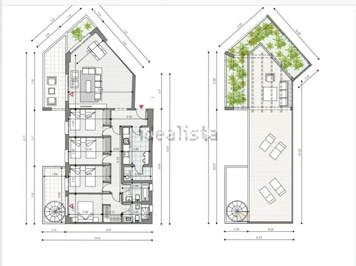 The bedrooms are generous and luminous, with two enjoying direct access to the upper terrace. The bathrooms, fitted with Roca furniture and soft-close sanitaryware, reflect a modern and relaxing style. The upper floor highlights an impressive panoramic terrace featuring a German-made Goriller outdoor kitchen, barbecue area, retractable awnings, automatic irrigation, and solar-powered video surveillance.