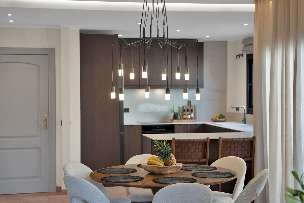Nestled in the heart of Calahonda a fully renovated and furnished 3-bedroom detached villa offering total peace and privacy, yet everything you need is just minutes away. Spread across three levels, the home blends elegant contemporary design with warm Mediterranean touches — natural textures, soft earthy tones and carefully curated details that create a timeless yet inviting atmosphere.