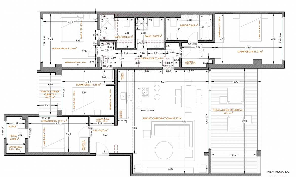 Technology and construction quality are the pillars of this renovation, which includes a cutting-edge aerothermal system for water heating, a high-end kitchen fully equipped with Bosch appliances, and a separate laundry room for added functionality. Special attention has been paid to acoustic and thermal well-being through total soundproofing on all walls shared with neighbors, the installation of high-efficiency thermal break windows, and electric shutters in all rooms.