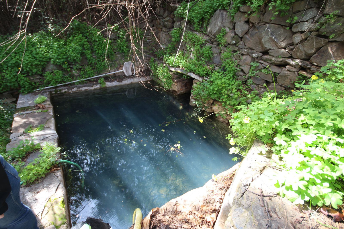 Water is supplied via a private well feeding a reservoir, providing sufficient water for both domestic use and irrigation.