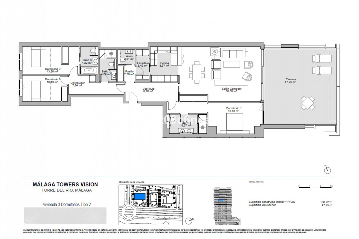 The property is located in the Vision Tower, part of Málaga Towers, an ultramodern residential complex on the iconic Antonio Banderas Promenade, Málaga's most prestigious and up-and-coming area.