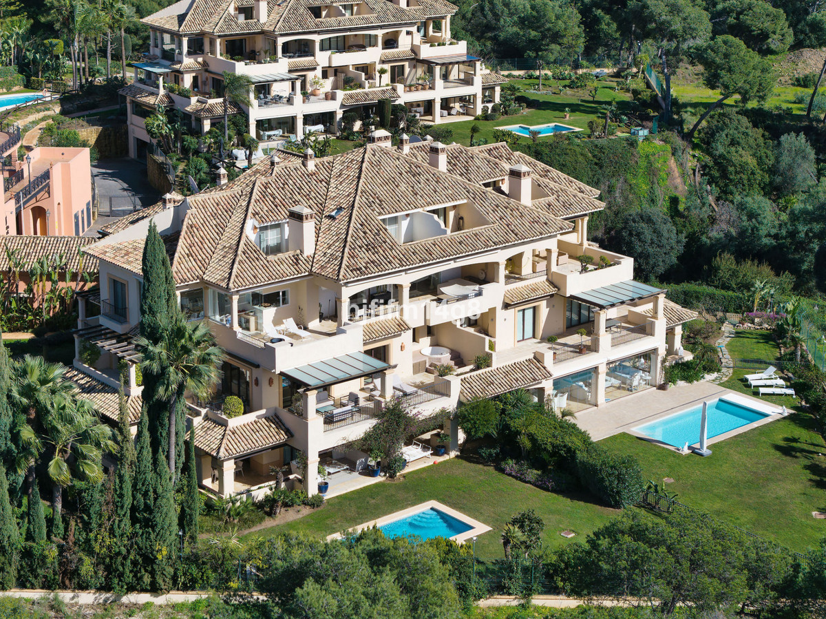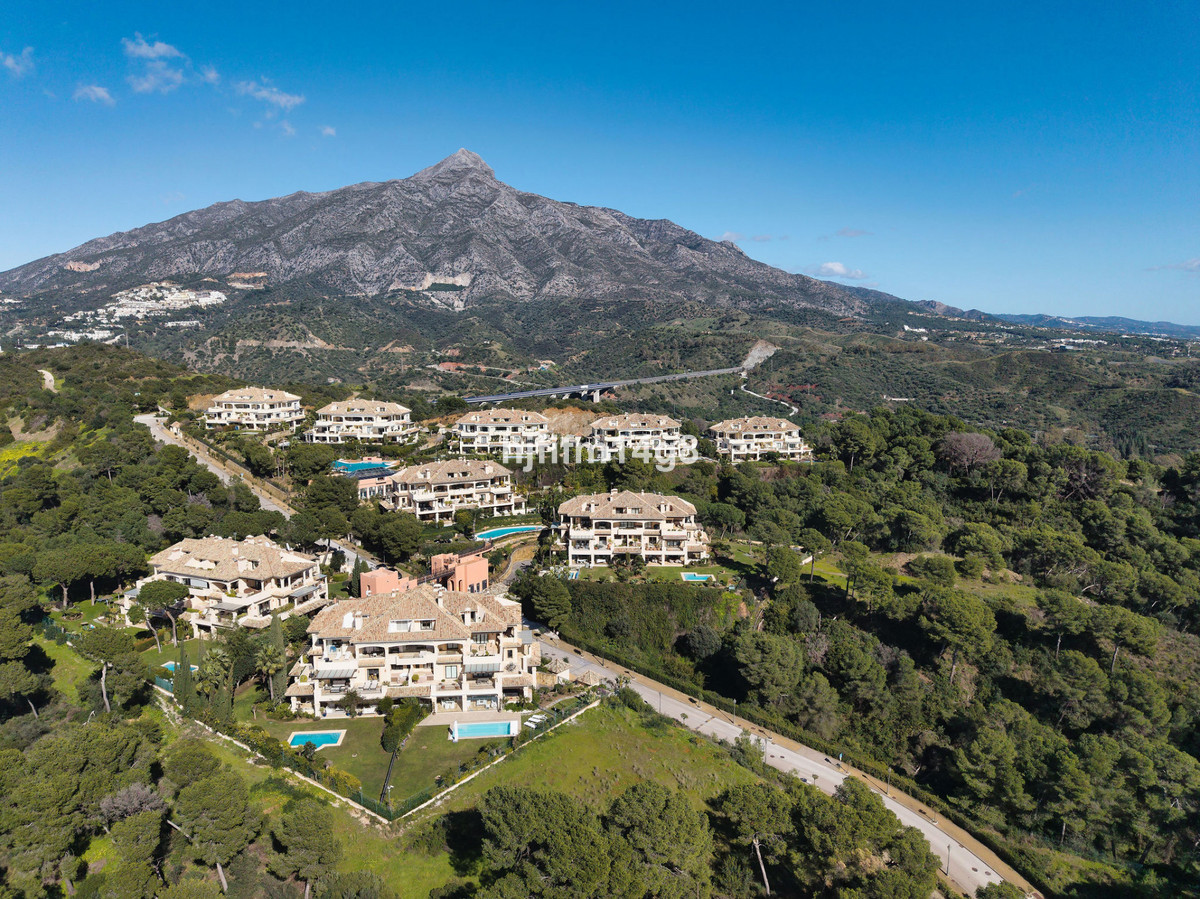 This exceptional three-bedroom corner apartment is located in the highly sought-after Aloha Park, in the heart of the Nueva Andalucía area, one of Marbella's most prestigious residential areas. Positioned just above the renowned Aloha Golf Club, the property offers a unique combination of luxury, comfort, and tranquility, surrounded by lush gardens, rolling golf fairways, and breathtaking views of La Concha mountain and the Mediterranean Sea.